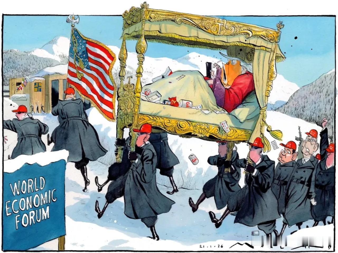 《泰晤士报》已经生动地描绘了特朗普及其随行人员今天隆重亮相达沃斯论坛的场景。 所以,准备好爆米花吧——今天达沃斯论坛肯定会爆出不少重磅消息。当然,前提是特朗普不会因为乘坐故障飞机往返而感到疲惫,并且真的能抵达论坛现场。