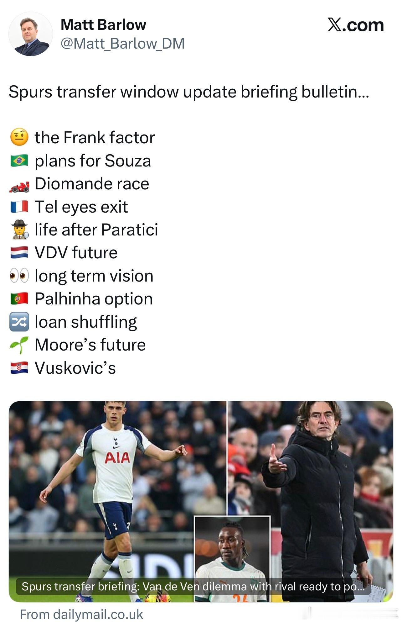 中卫的一个有趣的人选,在热刺效力的我军球迷范德芬。现在合同29年到期,同时他也已经拒绝了热刺提供的新合同。这个新闻前几天绿帽哥倒是先发出来了,并且他的消息源说范德芬梦想中的下家是我军。这个倒是也合理