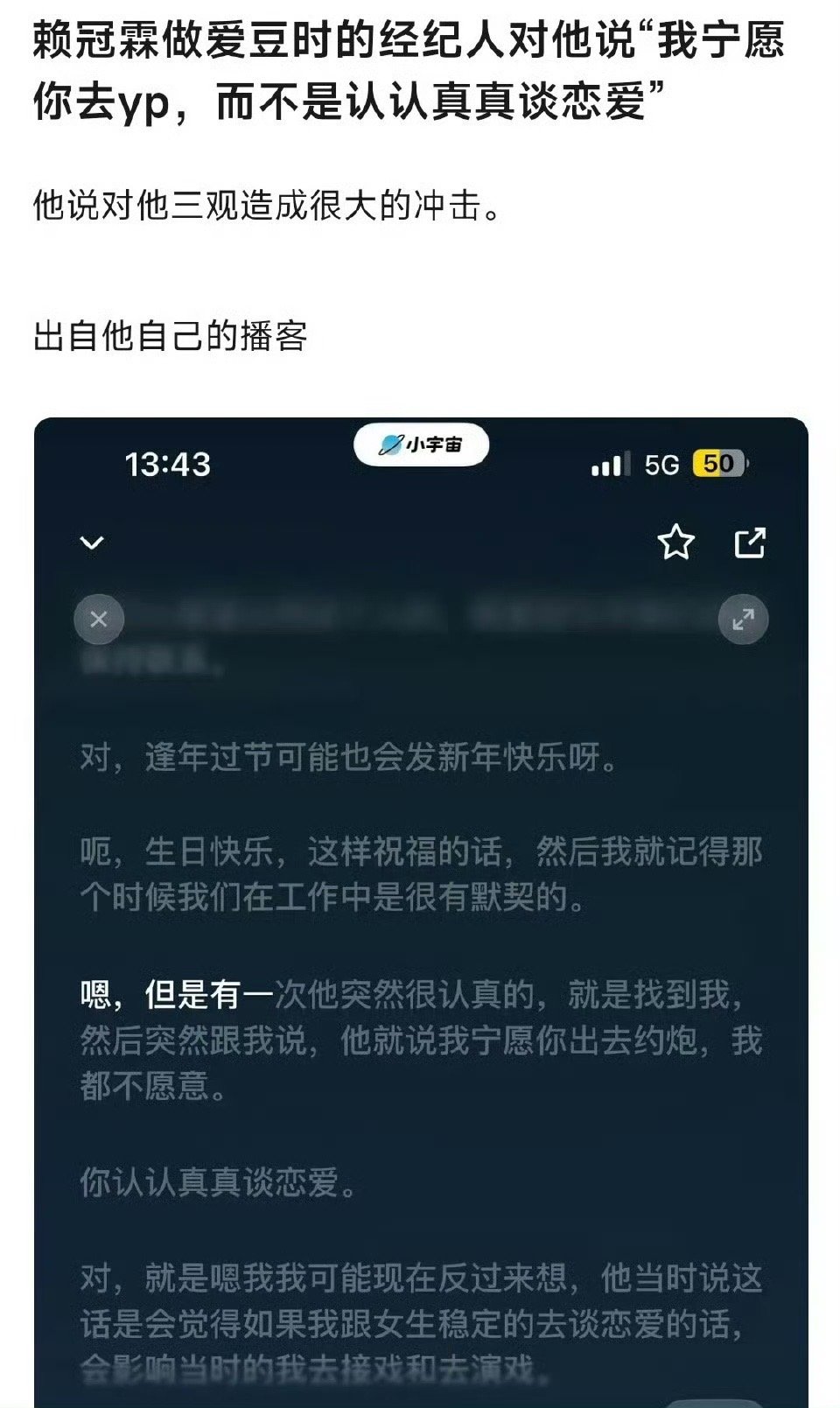 赖冠霖回应退圈赖冠霖做爱豆,演员,导演,播客都很好,支持小赖做自己想做的事业