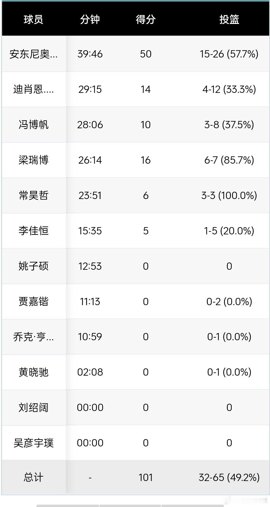不仅大家没有想到,估计就连杜锋都没有想到,徐杰今天首节比赛就已经得分上双了