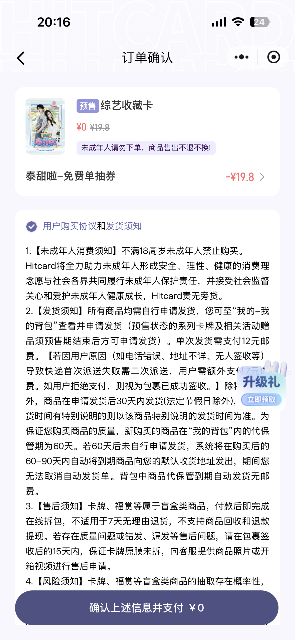 免费抽了一包谁要双人的我换虞书欣单人没有换卡通道了只能等货换咯