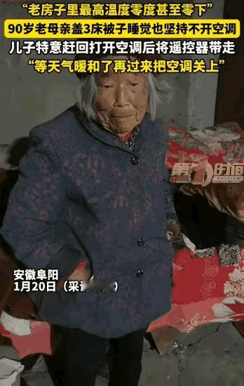 破防了!安徽阜阳,男子给90岁母亲住的老屋安了空调。没想到,他母亲舍不得开空调,盖三床被子睡觉。他赶回家,把空调打开,遥控器带走,等天气暖和,再回来把空调关上。 男子姓王,46岁,在外地做装修工。母亲一辈子在农村操劳,节俭刻进了骨子里,总说“能省就省,冻不着”。 阜阳的冬天湿冷,老屋年久透风,室内温度常常跌破零度。王师傅心疼母亲,去年入冬前特意赶回家,花几千块装了空调,还提前充了一年电费。 他以为这样母亲就能暖烘烘过冬,没想到上周抽空回家,推开门就撞见母亲裹着三床厚被子,缩在床头打盹。空调遥控器就放在枕边,电源根本没开。 “妈,你咋不开空调?”王师傅声音都有点急。母亲揉着眼睛说:“不冷,开着浪费电,这被子够暖和。” 可他摸了摸母亲的手,冰凉刺骨。 王师傅没多说,走到墙边按下空调开关,暖风很快吹满屋子。临走时,他把遥控器揣进兜里,跟母亲说:“温度我设好了,等开春我再回来关。” 母亲嘴上念叨“你这孩子”,眼里却含着笑。王师傅后来跟邻居说,知道母亲会心疼,但老人年纪大了,冻出病来更麻烦。 视频传到网上,网友纷纷留言。有人说“这才是真孝顺,不是光给钱就行”,也有人分享:“我妈也这样,买了暖气舍不得开,最后我把开关锁起来了”。 很多老人一辈子苦过来,节俭成了本能,哪怕子女有能力让他们享福,也舍不得多花一分钱。他们怕给孩子添负担,却忘了健康才是子女最在意的。 孝顺有时真不能太“听话”。父母的节俭值得尊重,但不能让他们委屈自己。像王师傅这样,用“霸道”的方式送上温暖,才是真正读懂了父母的心思。 各位读者你们怎么看?欢迎在评论区讨论。 孝顺 农村老人 亲情故事