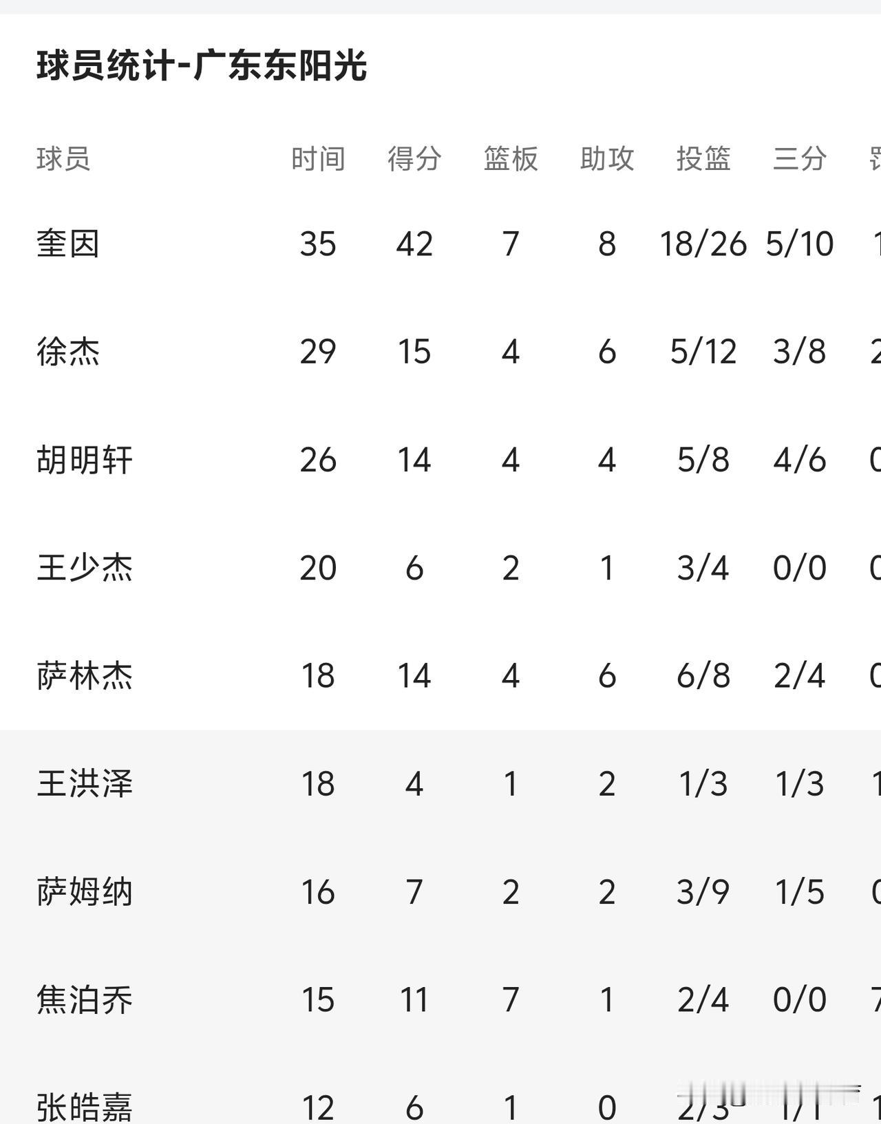 奎因炸裂的表现,广东东阳光21分大胜长白山恩都里[大笑][大笑][大笑] 42分7篮板8助攻,奎因光鲜亮丽的背后隐藏着4个失误,防守过分积极,很容易就被进攻球员的假动作晃开,造成防守漏洞[笑哭][笑哭][笑哭]给球队防守带来隐患 打球风格有点独,不大愿意分享球权,特别是国内球员