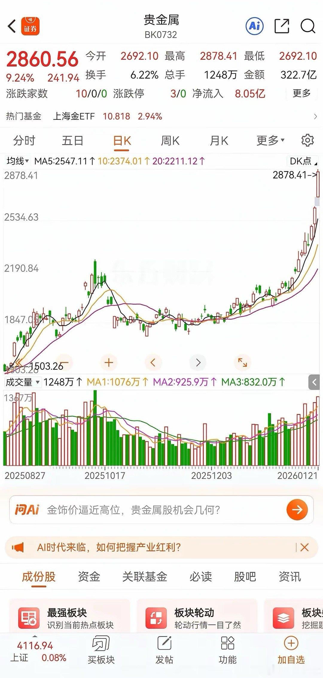 1月22日强势板块看法:首先说一下关于今天的反弹的看法。今天是调整周期内的反弹,不是反转!还缩量了近2000亿,所以不要抱过高的预期!春节前基本就是这种走势了,真正的春节行情得春节后了。存储。近期很强势,一是业绩预期很好。已经公布业绩的验证了这个预期。像佰维,德明利都业绩炸裂。二是因为老美那边存储个股的映射,毕竟连续创新高。但不会一直强势,今天就有点疲态。但这个板块涨价的逻辑最起码26年很难证伪,业绩是王道!分歧时逢低吸纳核心,哪怕短期被套,也不用慌张,前提是必须是真正受益的核心!贵金属为代表的有色。金银钨涨疯了。相关的个股也很疯狂。但这块和国际期货密切关联,波动比较大,而且经过连续上涨后,处在一个高位,短期追性价比并不高,等回调后再看。毕竟现在处于老美降息周期内,调整一段时间,估计还会新高。AI应用。经过连续的大跌后,逐渐企稳。尤其大中军蓝色连续三天高走,其他先行调整的譬如天龙也都走势良好,而且临近春节,这块催化消息应该不断,逢低关注没毛病。商航短时间没戏了。连续三天伤人,而且每天都是换着强势的票大跌,这种走势性价比太差了。博弈胜率太低。电网。外围形势复杂,内需肯定要加码。这块分歧时买核心,博隔日反包行情。毕竟现在指数不好,作为避险属性的板块,搞一把还是有性价比的。一家之言,仅作个人记录。欢迎友友们收藏转发关注互动。