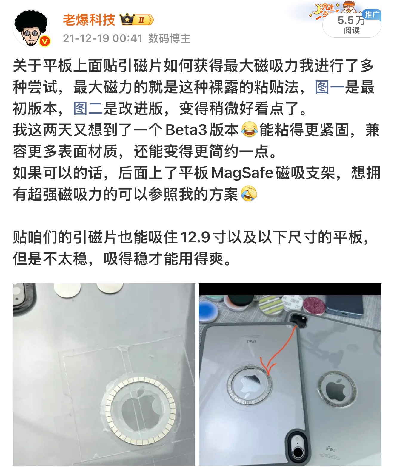 我对平板 MagSafe 磁吸的执念太深了我们做出来一款平板专用引磁片。我们做出来了平板专用都磁吸支架。也分享出来了平板落地磁吸支架玩法。但是很多人还是对磁吸会不会掉有担忧。那我做一个更强磁力的磁吸头,再做一个更强磁力的引磁片