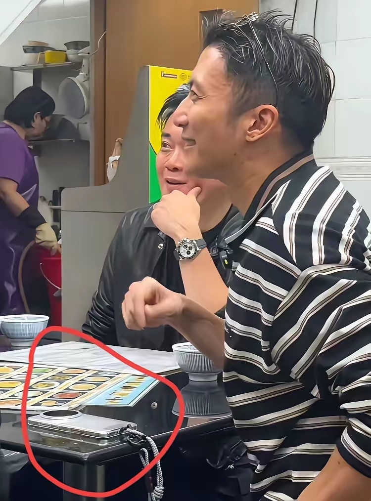 有网友拍到谢霆锋在香港一家饭馆吃饭的场景,能看得出,他状态挺放松自然,在香港,明星出门挺自由的,不会被人跟拍或者围堵,有人知道他用的这款手机是什么牌子吗?明显不是苹果。
