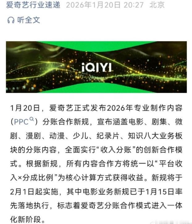 爱奇艺应该是亏了不少! 爱奇艺宣布首席财务官辞职,一个公司的财务辞职了,如果是贪腐,那就进去了,所以应该是亏钱了,再加上爱奇艺最近调整了剧集分账的新政策,以后只有平台赚钱,片方才能按比例分账,相当于以后第三方的播放和热度数据都没啥用处了,毕竟很多数据是可以用钱攻克的,以后的剧不管营销的有多爆,只要平台赚不到钱,就很难被平台买账,以后明星的实绩,可能要按一部剧分账多少钱来计算了,最近几年三大平台热度水到破万的亏钱扑剧太多了,以后平台的钱没那么好骗了。