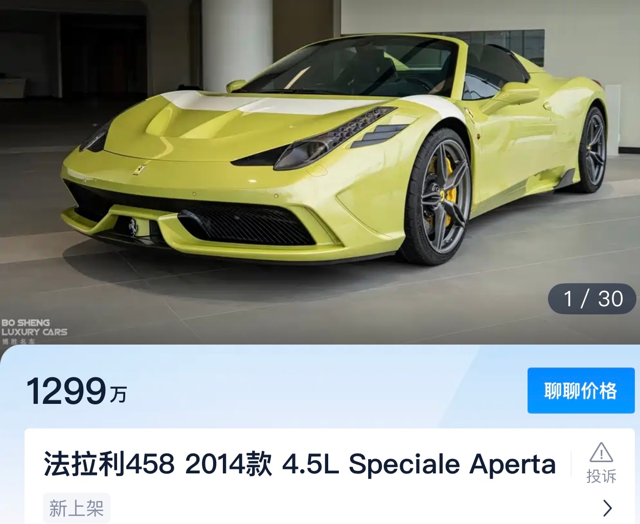 这台国内最美458 SPA 、也是目前国内报价最高的458。来跃马爱好车、藏家们来一起感受下现在二手车市场法拉利458 Speciale Aperta几千公里的车源报价来到了1千万以上了、法拉利限量赛道目前只要车好、价格不太离谱、是有价有市的!尤其是特别稀缺配色、特别选配、更加受到市场追捧。不像某些HyperCar、行情纯属扯蛋……法拉利458Speciale Aperta