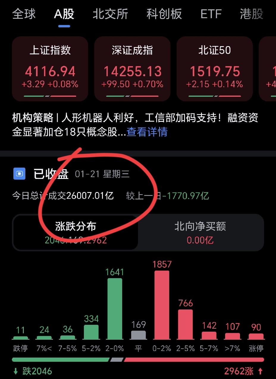 今天大盘有点牛,外围市场那么烂,走出了自己独立的牛市。 只是交易量萎缩的很严重,只有2.6万亿了,比高峰期几乎缩了一万亿。 也就短短一周时间,市场情绪真的很差,多少人被埋在股市里或是大亏割肉了。 说真的,很多人去年赚的,也就短短几天利润全吐出来了。我朋友说,伤心了,股市不玩了,直接割肉过年。 像我朋友这样的人应该很多,在股市里真的伤到了,特别是新手,亏的要怀疑人生。 马上过年了,年后一周内必然有一波行情,可以拭目以待。 今天听到章盟主,陈小群退出股市准备过年的消息,让我也比较意外,他们其实赚了很多,虽然这几天吐出来一些,但对于全年利润而言,属于毛毛雨。 大家打算年前退出股市吗?
