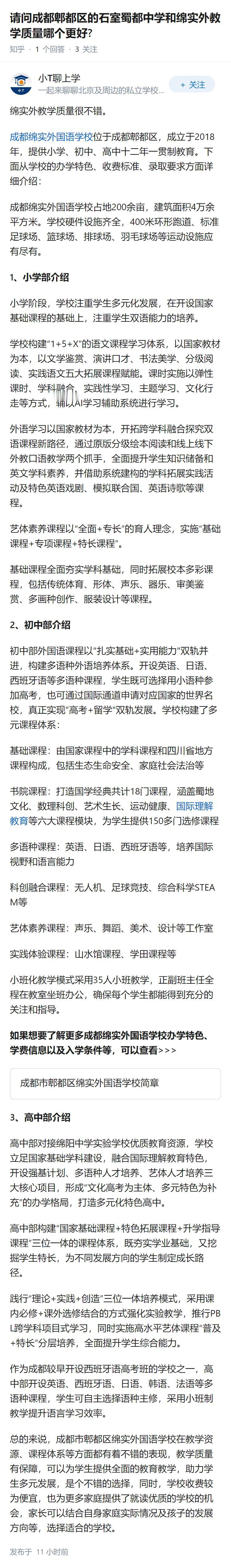 请问成都郫都区的石室蜀都中学和绵实外教学质量哪个更好?