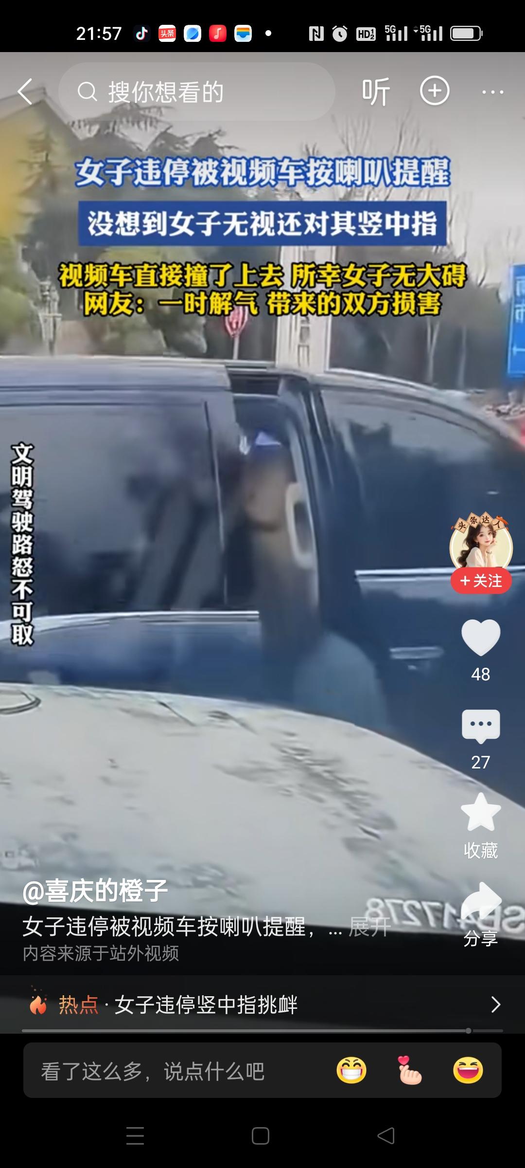 嚣张的人碰上硬茬,谁更受伤? 一女子违停,挡住别人的车进停车场,视频车按喇叭提醒