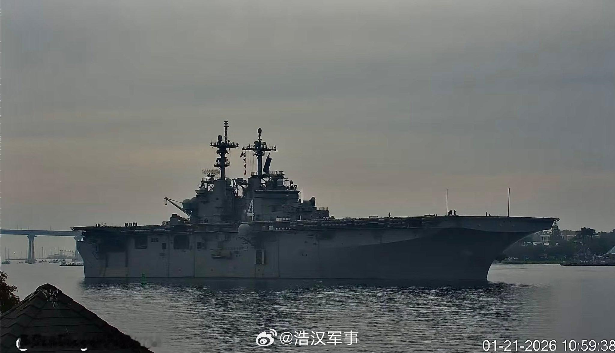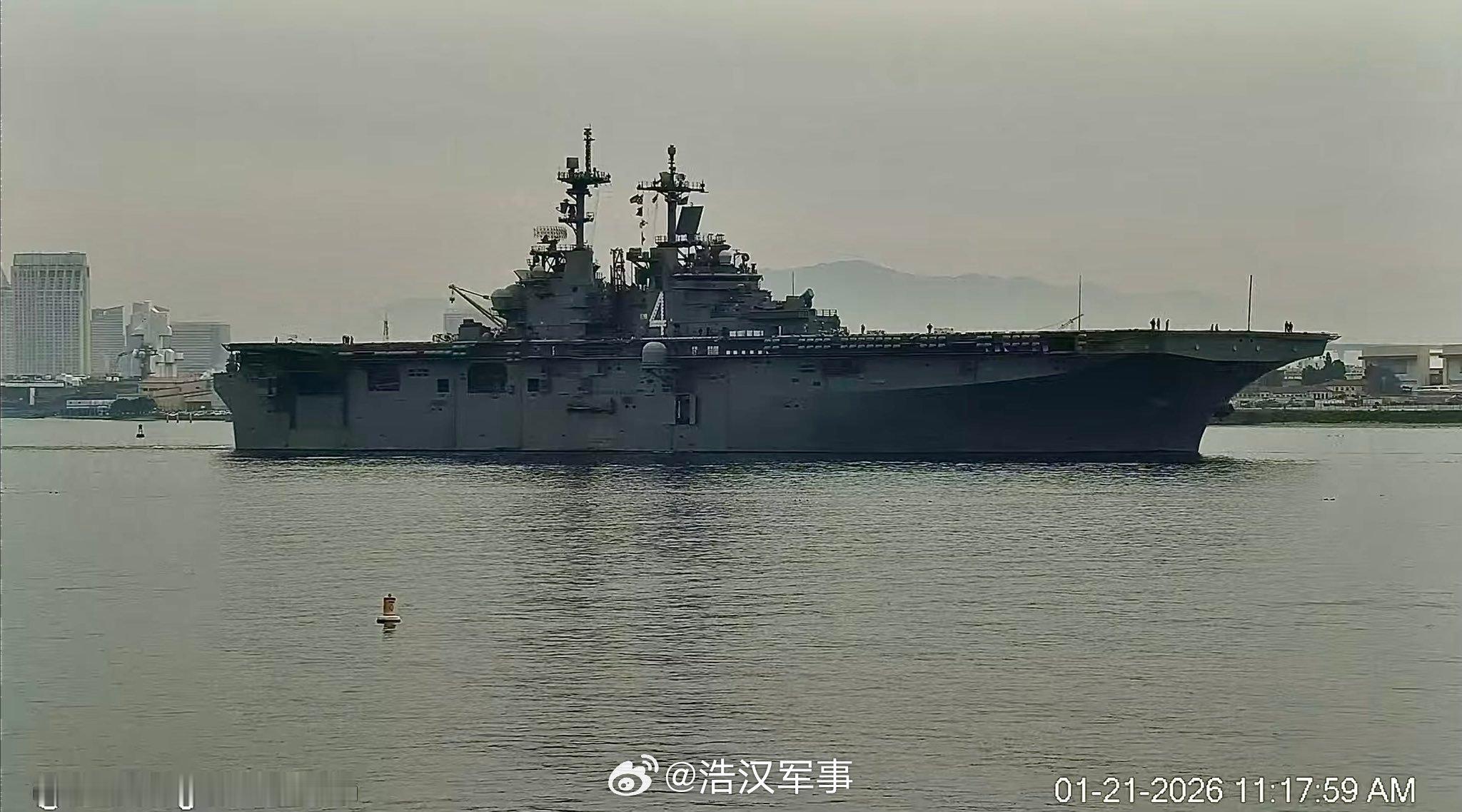 每天认识一件兵器烽火问鼎计划全球武器装备盘点 2026 年 1 月 21 日,美国海军“拳师”号(LHD 4)黄蜂级两栖攻击舰离开圣地亚哥。