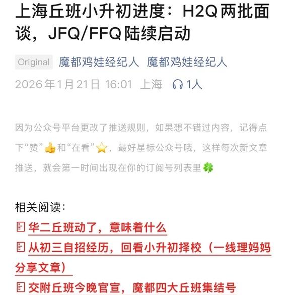 上海丘班小升初进度:H2Q / JFQ / FFQ 上海择校 学科竞赛 上海四校 小升初 丘班招生 上海丘班 复附丘班 交附丘班 上海中学