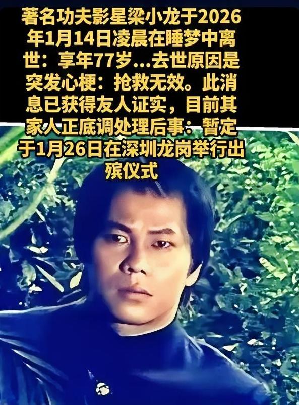 泪目!梁小龙离世前1天还赠友"真功夫"墨宝,合影笑容满面,75岁人生终成传奇 2026年1月14日,一则噩耗让无数网友心碎——功夫巨星梁小龙因心脏衰竭经6小时抢救无效离世,享年75岁。而就在他离世前一天,还在深圳与友人欢聚畅谈,亲手赠送的"真功夫"墨宝、满面笑容的合影,成为他留给世人最后的温暖印记。 时间定格在2026年1月13日晚间,深圳罗湖一家火锅店内暖意融融。梁小龙身穿黑色外套、围着蓝色围巾,精神矍铄地与三位友人聚餐,席间主动为大家夹菜,兴致勃勃地分享习武多年的趣事,还畅谈起2026年的新计划:拍摄传统武术纪录片、开直播教网友练拳,言语间满是对生活的热爱与期待。 有粉丝认出这位功夫巨星,上前请求合影,梁小龙毫无架子,大方配合并竖起标志性的大拇指,笑容爽朗感染力十足。酒酣耳热之际,他更是当场铺展宣纸,挥毫泼墨写下"真功夫"三个苍劲有力的大字,郑重落款签名后赠予牵头聚餐的友人,谁也没想到,这幅饱含心意的墨宝,会成为他人生最后一次公开送礼。 这场温馨的聚餐持续了3小时,散场时梁小龙亲自将友人送到门口,脚步轻快、状态极佳,还笑着约定"下次再聚",全程未见任何异常。可谁曾想,这一句"再见"竟成永别。1月14日,梁小龙突发心脏衰竭,虽经医护人员全力抢救6小时,最终还是没能留住这位功夫传奇。 家属在公布消息时澄清,梁小龙实际出生于1951年,此前百科标注的1948年为误传,享年75岁,后事暂定于1月26日在深圳龙岗举行。消息一出,成龙、周星驰等影视圈同行纷纷发文悼念,成龙追忆道"他是真正的武林高手,更是值得敬佩的前辈",周星驰则感慨"银幕上的经典形象永远难忘"。 网友们更是悲痛不已,纷纷晒出1月13日的聚餐合影和"真功夫"墨宝照片,留言缅怀:"前一天还笑容满面谈未来,太突然了""从小看他的《霍元甲》《陈真》长大,他的真功夫和真性情刻在心里""最后的'真功夫'墨宝,是他一生的写照"。 从银幕上拳脚生风的"陈真",到现实中低调谦逊的功夫传人,梁小龙用75年的人生诠释了"真功夫"的真谛——不仅是武术上的精湛造诣,更是对生活的热忱、对友人的真诚。他离世前的从容与热爱,让这场离别更添温情。传奇虽逝,但那些经典银幕形象、那份对武术的坚守,将永远留在观众心中。 梁小龙离世 功夫巨星