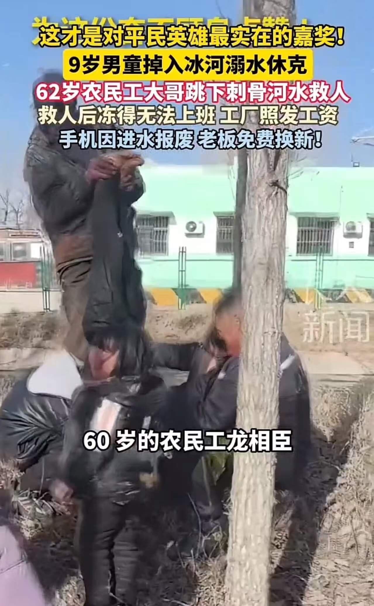 “这才是对平民英雄最实在的嘉奖!”9岁男孩冰河溺水,62岁农民工跳入刺骨河水救人