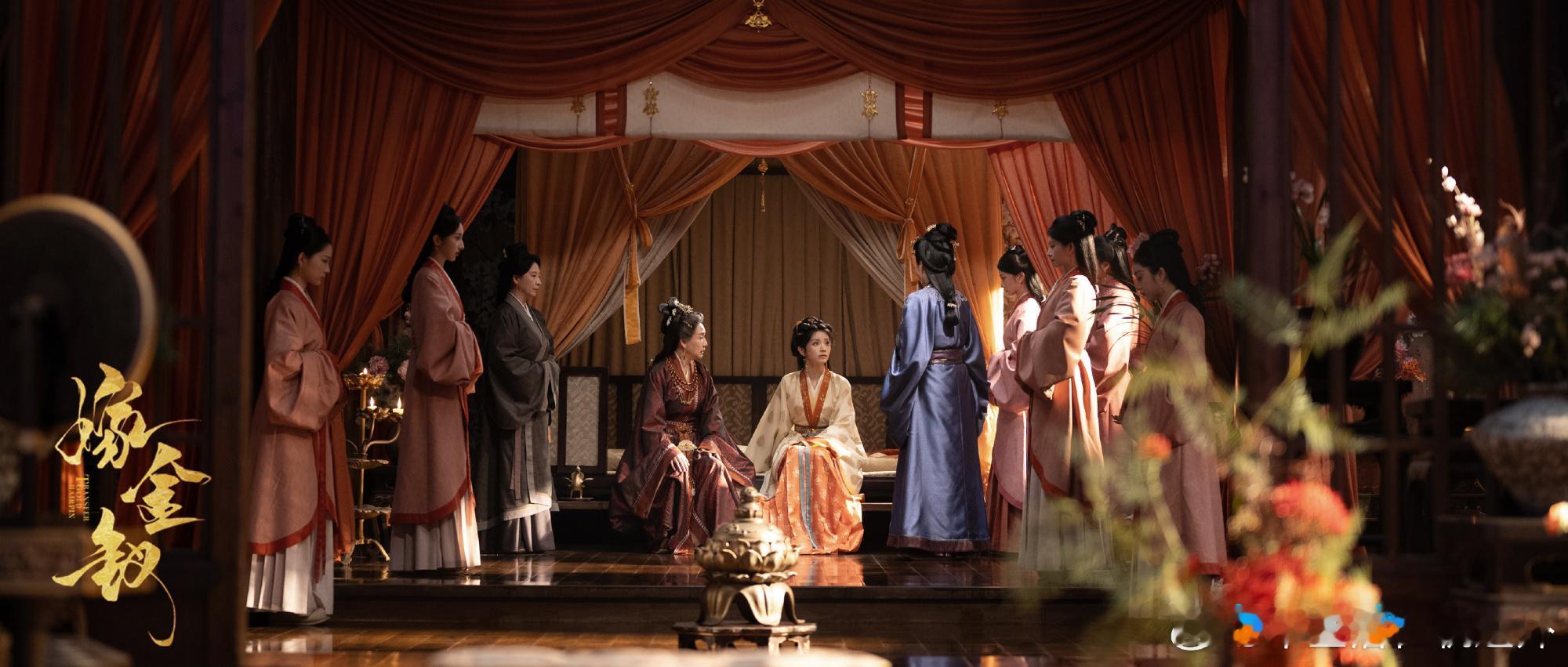 《嫁金钗》光看阵容和剧照,一水的女强男弱,男演员连一个拿得出手的都没有,女演员倒都是美女。图六看着男主站在那里,虽然构图的视觉中心是女演员们,但居然有点滑稽。