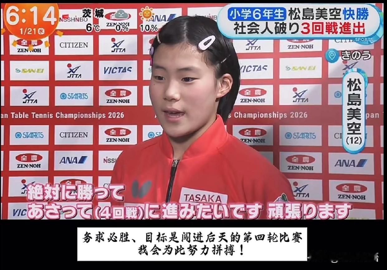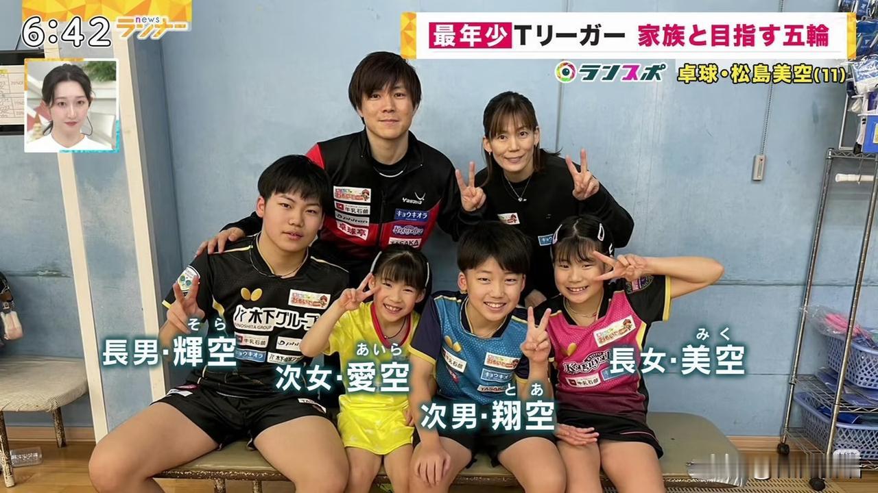 松岛辉空的爸爸看起来真年轻啊。 松岛辉空一家都是打乒乓球的,今年的全日锦松岛辉空、松岛美空、松岛翔空都参赛,他的妹妹松岛美空还参加成人组的比赛,而且还闯入了第四轮比赛,这个小女孩打球也很不错,她说今年的目标是闯入全日锦四强,一个12岁的小女孩,确实敢打敢拼啊。看了松岛辉空的采访,他的妹妹松岛美空现在身高已经155了,在日乒女队里这么小的女孩儿,已经算高的了吧。 松岛辉空兄妹四个都是左手,他们家的梯队建设还是可以的啊,松岛美空现在参加青年赛也是打出一些成绩的。松岛辉空看了弟弟妹妹的比赛,他说:“刚才见到了他们,两人都赢下了比赛,表现得很色。这让我觉得自己也绝不能输。赛前我们就像平时一样聊天,彼此都传递出要加油的心意。”一家人都打乒乓球也很好,可以相互鼓励。 去年的全日锦松岛辉空是拿到了男单冠军,今年松岛辉空还是很有信心的,对于新年的展望,松岛辉空说:“今年希望世排能进前5,卫冕全日锦,希望能拿出优异的成绩,为冲击奥运会打好基础。”松岛辉空的父母肯定对孩子们要求也严格,不过松岛辉空的爸爸确实年轻,他也是81年的,和志强同岁,看看志强那白发,当国乒教练确实不容易啊。
