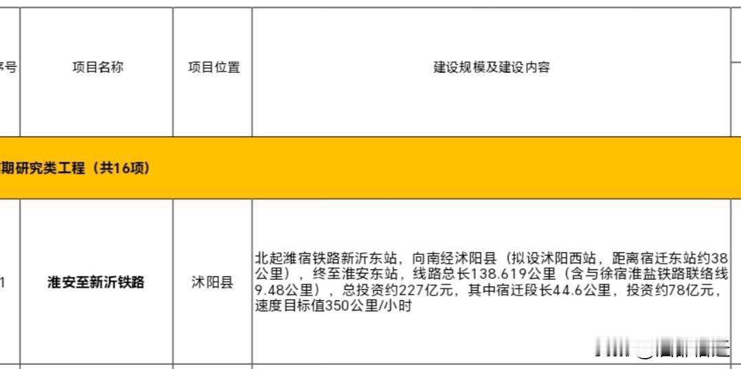 2026年宿迁市重点项目公布,新淮铁路仍处于前期研究阶段! 依据2025年12月江苏省发改委与宿迁、淮安两市联合召开的推进会议精神,新淮高铁项目按照“2026年底开工、2030年通车”的目标推进,可研报告已上报国家发改委等待审批,具备2026年底开工的条件。 然而,截至2026年1月,新淮铁路仍未获得最终开建批复,其建设受国家严格控制建设既有高铁平行线路政策的影响,建设的迫切性尚需进一步研究。