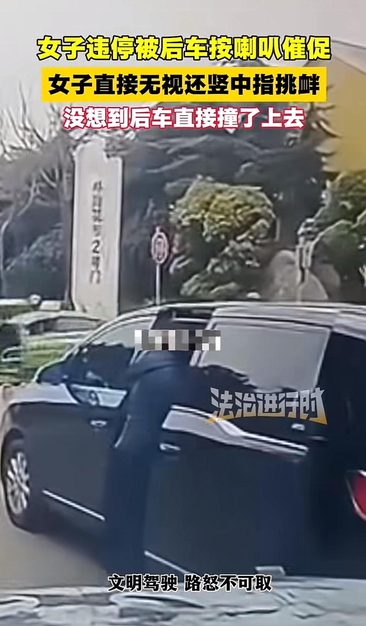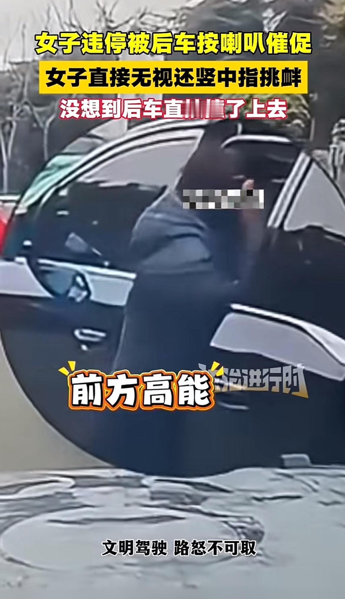女子违停还这么嚣张,真是让人无语!想象一下,大家都在正常通行,她却随意停车挡住路。别人催促,她不但不配合,还直接竖中指挑衅,这素质简直低到尘埃里了。 更绝的是后车直接撞了上去,估计也是被她的态度惹毛了。这一撞看似解气,但也可能带来不少麻烦,比如车辆损坏、后续的责任判定等。不过这女子也得好好反思自己的行为,公共场合不是她撒野的地方,不能这么任性。希望大家都能遵守交通规则,别因为一时的冲动和无礼引发不必要的冲突。