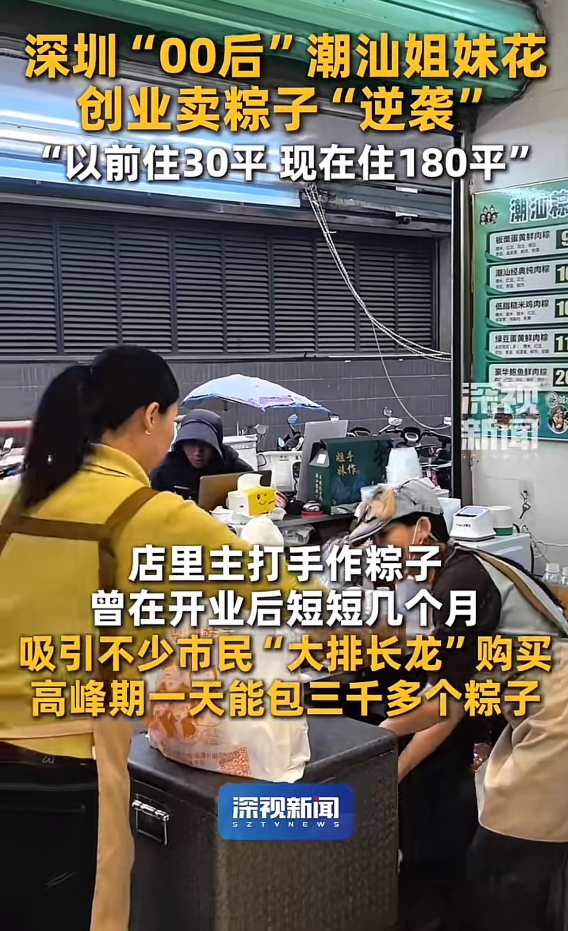 深圳蛇口藏着一家超火的“姐妹手作”粽子铺,是潮汕00后五姐妹的创业成果。创业初心很简单,就是想和家人过上好日子,以前一家八口挤在30平房子,大家都渴望有自己的空间。 2023年三姐小玉开了第一家店,起初营业额一天300 - 500元,后来一家人摸索着运营,妹妹负责线下,小玉负责线上,妈妈负责厨房。小店生意渐好,平时一天能卖四五百个粽子,端午高峰期能卖三四千个。现在她们住上了180平大房子,这逆袭太牛啦!