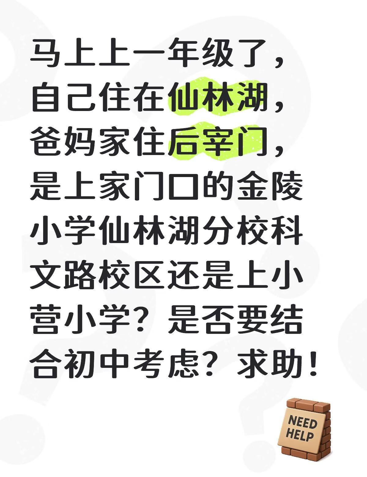 马上上一年级了,自己住在仙林湖,爸妈家住后宰门,是上家门口的金陵小学仙林湖分校科文路校区还是上小营小学?是否要结合初中考虑?求助!金陵小学仙林湖 小营小学 小学