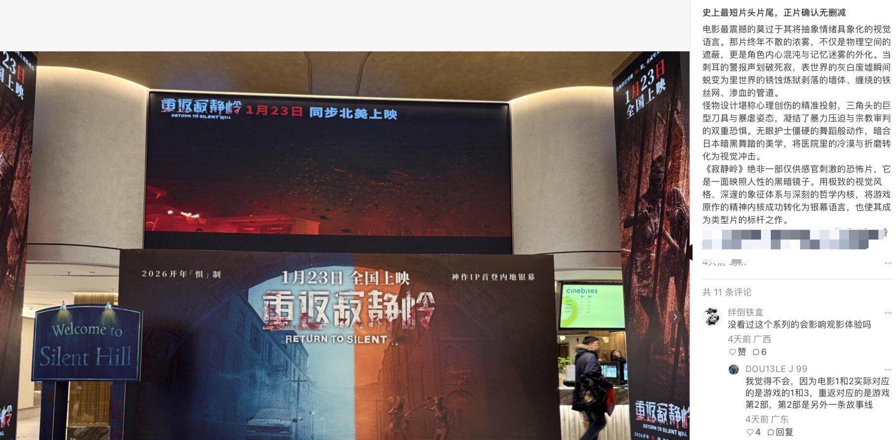 重返寂静岭中外网友对比片头时长 内地版片头比海外版短,已是中外网友对比后的共识。删减主要集中于片头制作信息,正片的恐怖核心据说得以保留。作为该系列首次登上内地大银幕,机会难得,明天上映值得影迷们亲自去影院探个究竟。