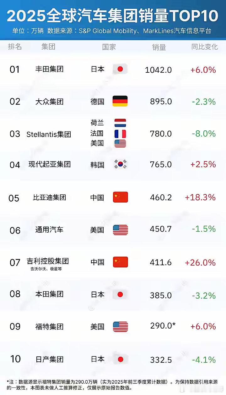 吉利汽车集团销量即将追上比亚迪,沃尔沃神助攻2025年度的全球汽车集团销量已经统计出来了,排名也正式出炉,吉利控股集团2025年总销量4116321辆,同比增长26%,全球排名第七,是全球车企中同比增速最快的,并且缩小了和第五名比亚迪的差距。整个吉利汽车集团中品牌细分:吉利汽车(含中国星燃油车、银河、领克、极氪):3024567辆,同比+39%。其中中国星燃油车1214132辆、银河1240000辆、领克350000辆、极氪224000辆。沃尔沃汽车:710042辆,新能源323294辆,渗透率46%。宝腾汽车:162601辆,同比+6.5%。极星汽车:超60000辆,同比+30%+。远程新能源商用车:162019辆。其中,吉利集团投资收购的沃尔沃、宝腾、极星在助攻上面发挥了很大作用,为吉利集团贡献了90多万销量,吉利集团按照这个增速将可能超越比亚迪集团,这两家中国车企的竞争在26年将更加激烈。