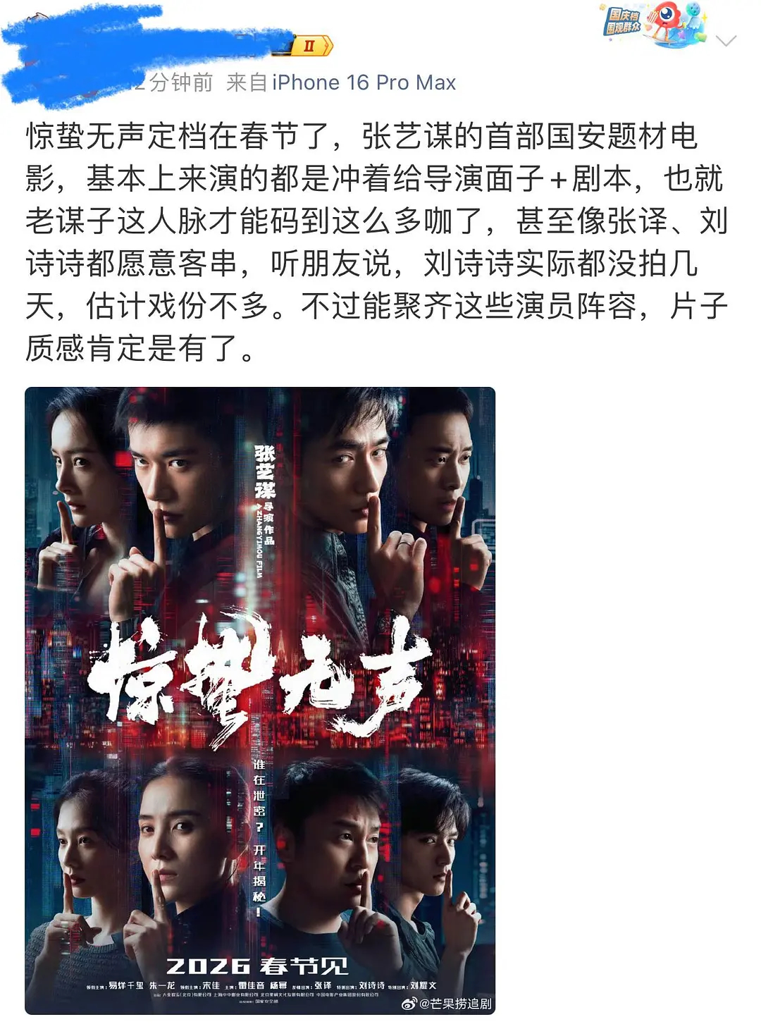 张艺谋拍的杨幂刘诗诗 众所周知,特出不算番位,emo的电影演到就是赚到吧感觉刘诗诗好像也很久没拍过🎞️了