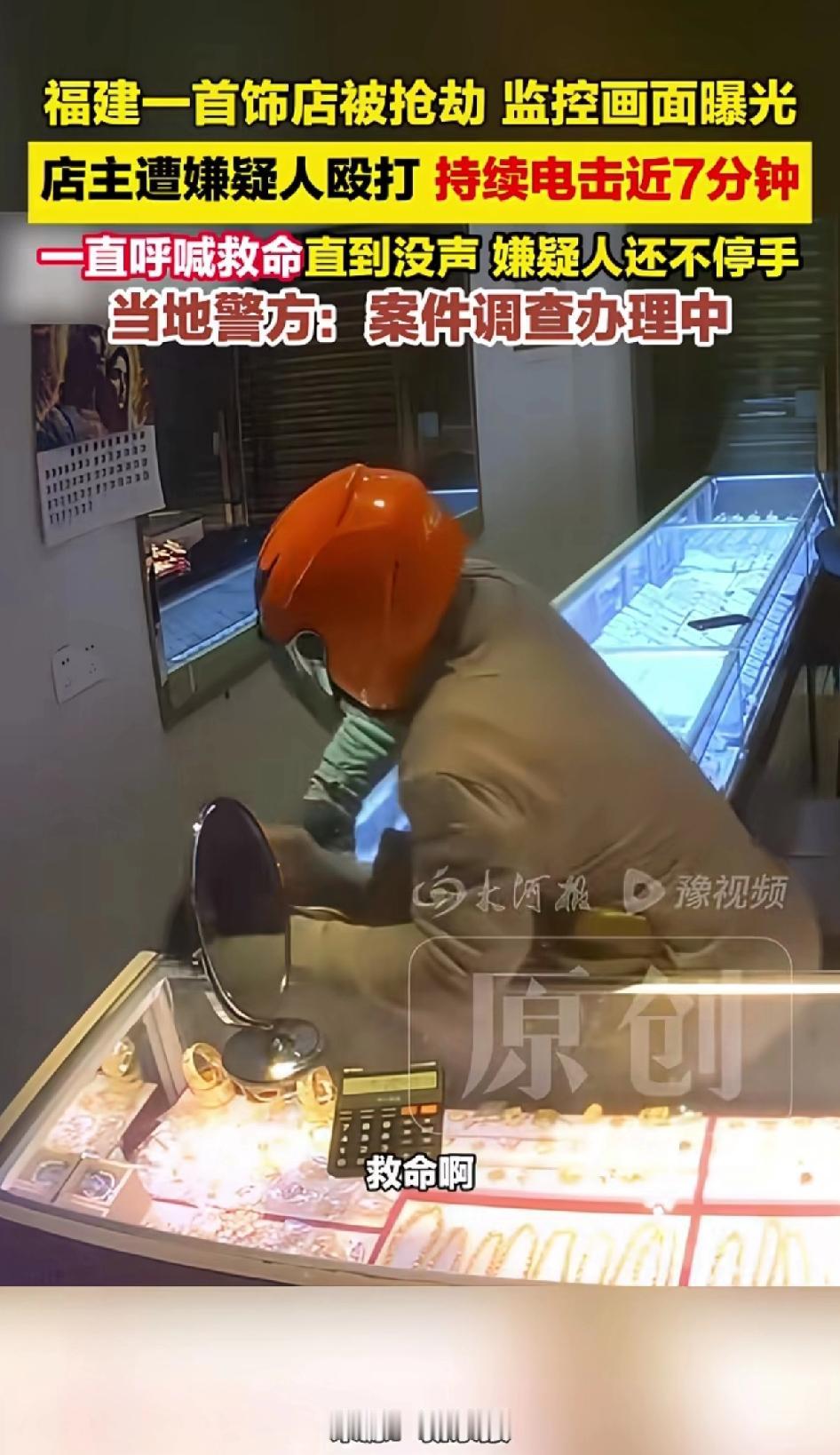 福建一首饰店被抢劫,监控画面曝光劫匪抢劫过程,画面里店主遭劫匪殴打和电击。 福建平潭这起首饰店抢劫案太吓人了!1月18日傍晚,店主正准备打烊,卷帘门快关严时,一个戴头盔的劫匪从门缝钻了进来。上来就用电棒电击店主,持续7分钟的电击,尽管店主嘴里大喊着救命,劫匪依然没有停手的意思,还举起手里的武器重重砸向店主。 接着砸坏柜台抢财物,整个过程就几分钟。店主大声呼救,好在就医后身体无大碍。 随着金价大涨,关于抢劫金店,入户盗窃黄金首饰的案例越来越多。现在大街上和店里都有监控,哪怕是普通老百姓家里都装有监控,可还是阻挡不了这些小偷和劫匪的侥幸心理。 从监控能看出,劫匪明显是有备而来,专挑关店瞬间下手。很多小店关店时一人值守,卷帘门下降慢,安保有漏洞。 这劫匪估计早就提前踩点,所以趁店里关门人少的时候动手。 不过店主报警及时,警方已立案,调取周边监控全力侦办。抢劫罪最低判三年以上,这劫匪跑不了。 小店真得重视安防,装智能卷帘门、防爆玻璃柜台,藏好一键报警按钮,安全投入不能省啊。