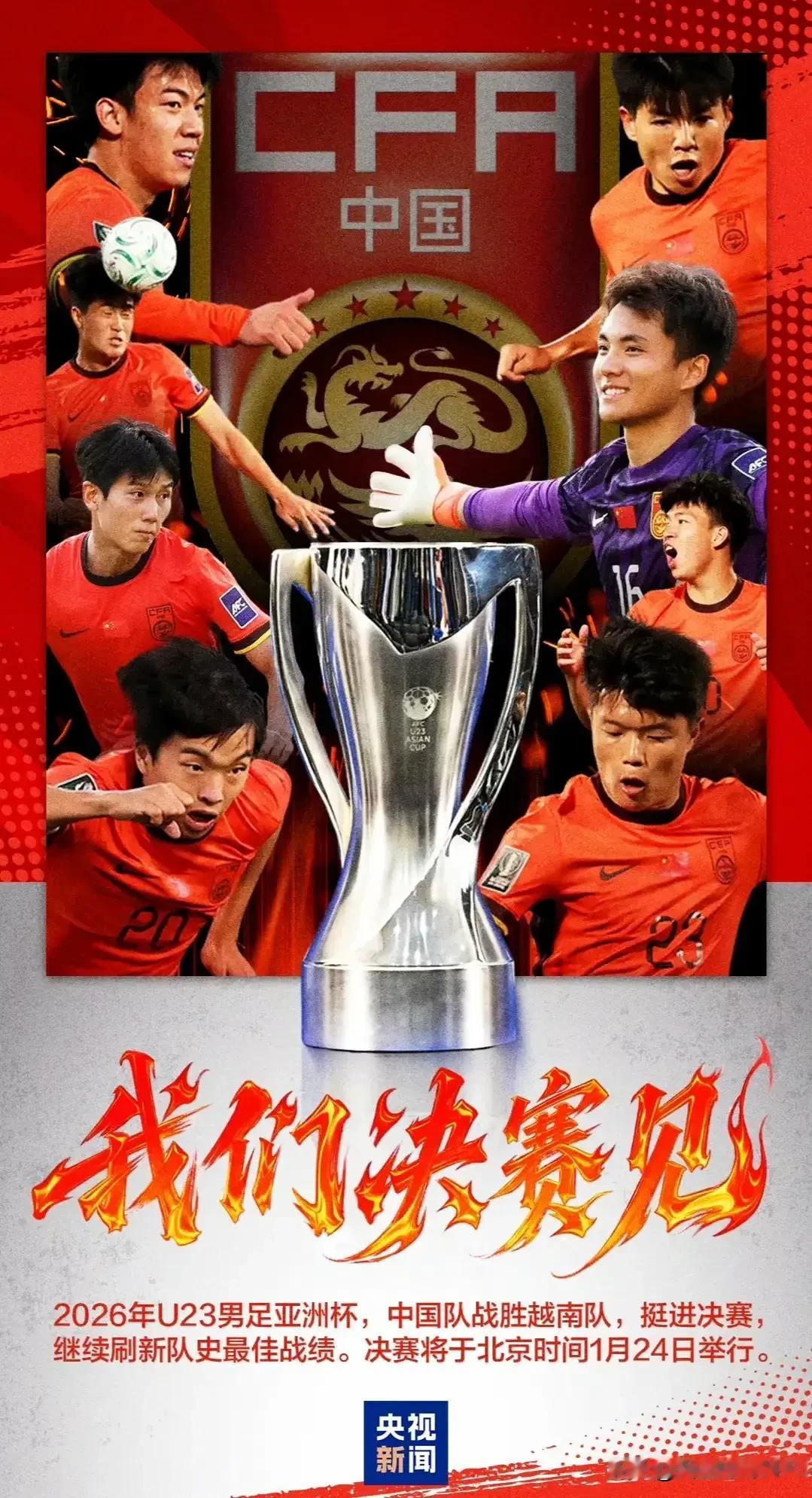 国青队自小组赛起,从一支无人看好的弱旅,一路杀进决赛。就是一只丑小鸭完成了向白天鹅的华丽蜕变,令全国球迷为之一振,不少人球迷激动得流下了幸福的泪水。 就连咸阳市某地铁口附近的大屏幕上,都打出了“计划有变,准备夺冠,历史首进决赛圈,和日本争冠”的标语。这其实也充分表明,这些年中国足球让球迷压抑太久,带给大家的多是悲伤的回忆。 此次亚洲杯,国青队让全国球迷倍感振奋,惊喜不已!希望我们的国青队在与日本队的争冠比赛中,能彻底放下压力,发挥出自己的水平。毕竟你们已经创造了奇迹,刷新并改变了所有球迷对中国足球的看法,原来我们也能踢好足球。