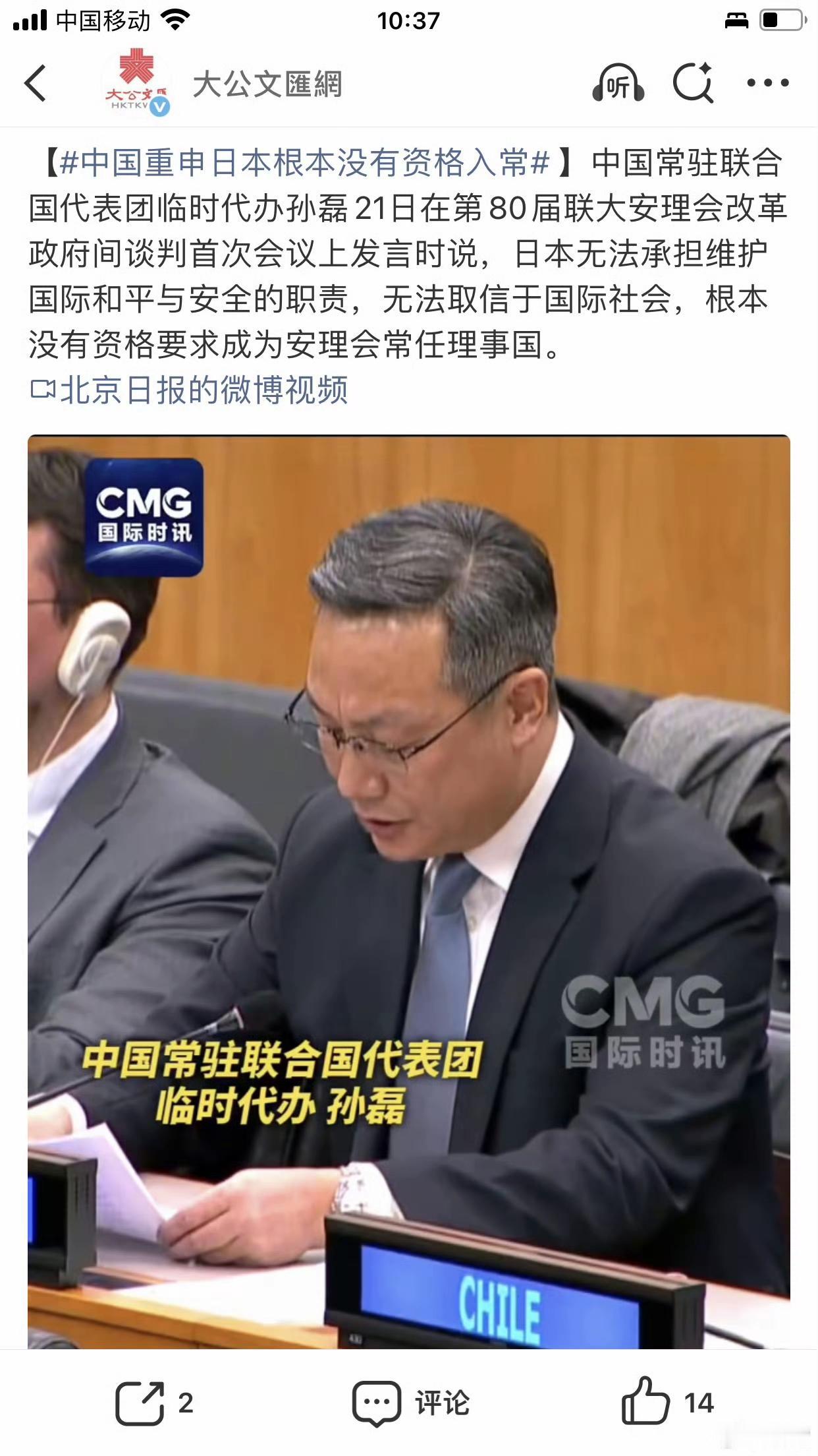 对于日本入常,中国直接就是一票否决!就应该这样!