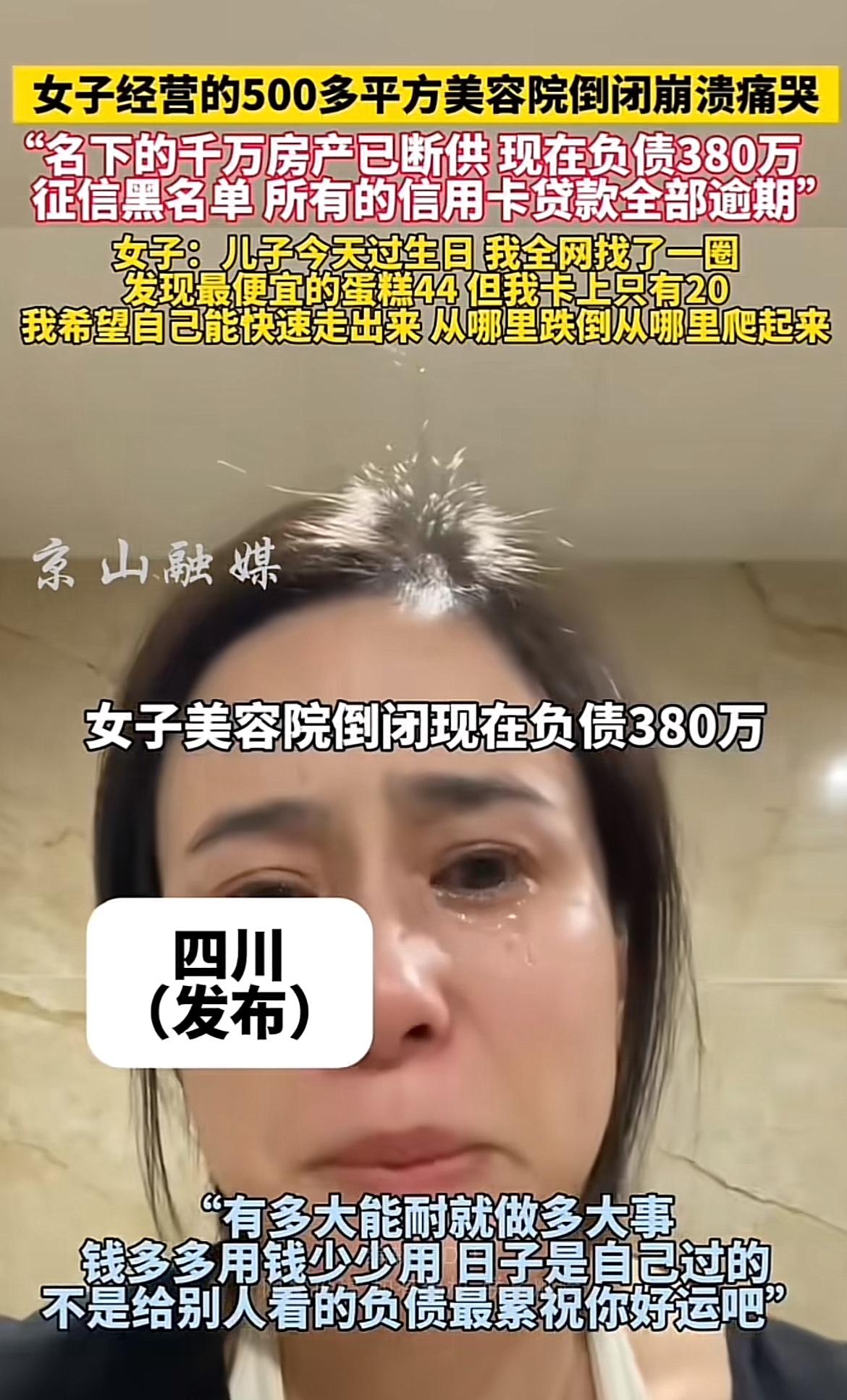 女子美容院倒闭负债380万崩溃痛哭,这画面想想就心酸。就像上海周女士女儿,两年在美容店花55万还背68万债,单日消费17万多,连自己都没印象,店家还一堆问题,消费者容易陷入消费陷阱,美容院也不好干呐。还有45岁大姐创业巅峰后负债380万,从开宝马到馒头分两顿吃。可能是盲目扩张、亲友借钱不还,再加上疫情冲击。开美容院或许也面临竞争大、成本高、顾客难留等问题,一个环节出错就可能满盘皆输,这负债的压力真不是一般人能扛的。