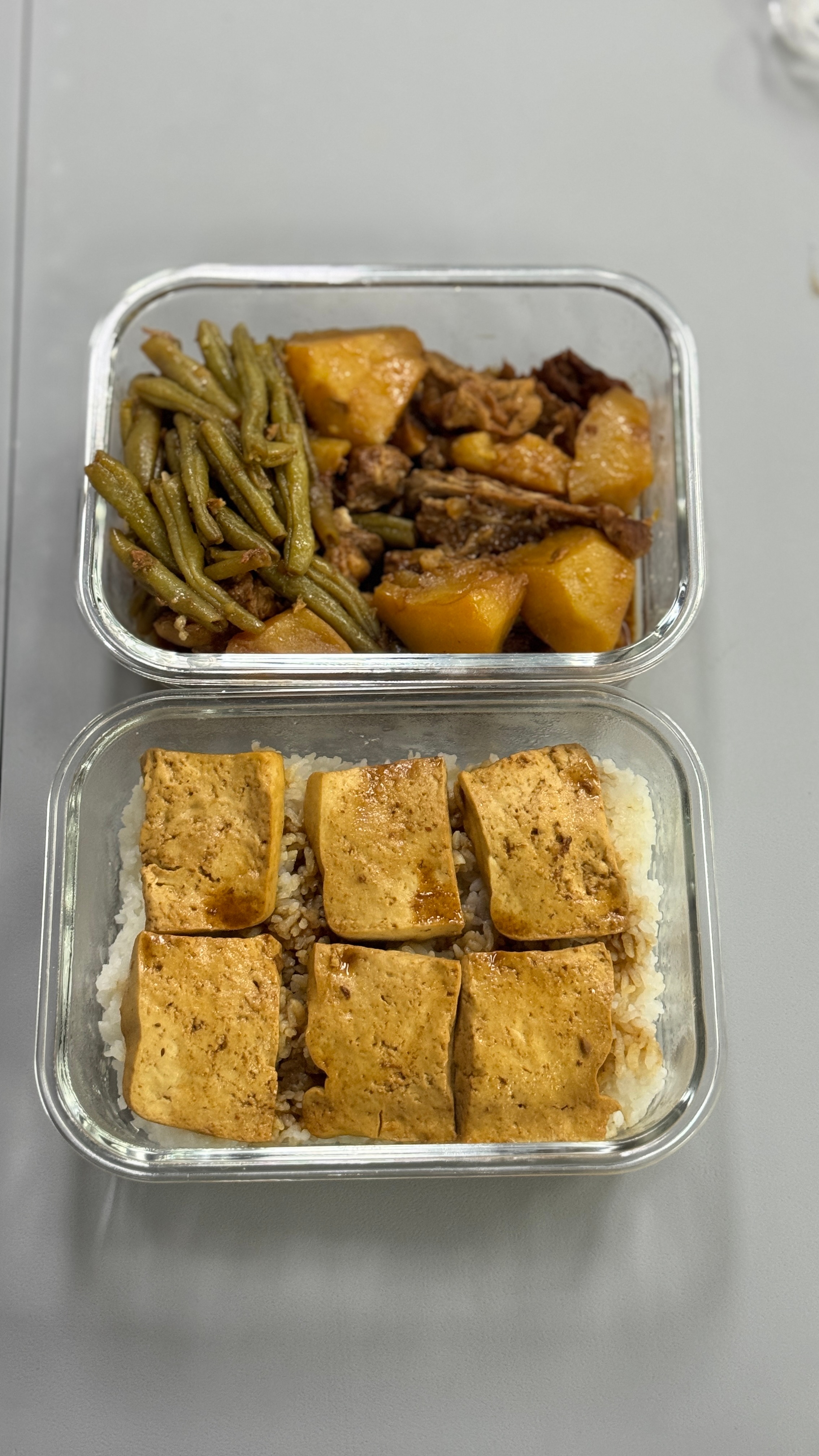 晒一下老婆给我带的午饭,还准备了小袋饹馇盒
