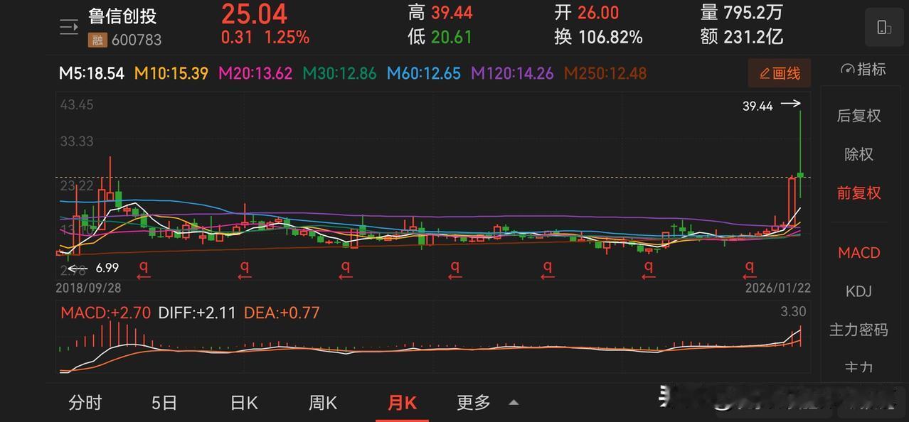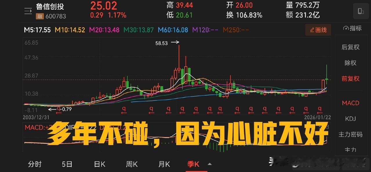 鲁信创投在前面的中继位置止跌企稳,跌去了 差不多 40%,我很多年不买它完全是因为心脏受不了,盘子太小,买了之后老是琢磨该走还是该留的事,那就算了。 这样的行情对绝大多数人来说不是机会而是陷阱,只有极少数低位买入持有的朋友,还有操盘的人可以获益,其他人基本上很难挣到钱。 很多陷阱,是以机会的形式出现。同样的,很多机会也是在看起来不是那么美丽的时候形成。 中信证券和国投资本,这种有背景的传统券商,现在看起来就不那么美好。当然,可能未来仍然还是不那么美好。