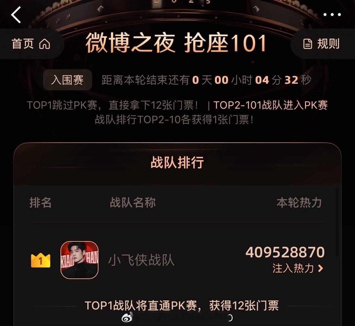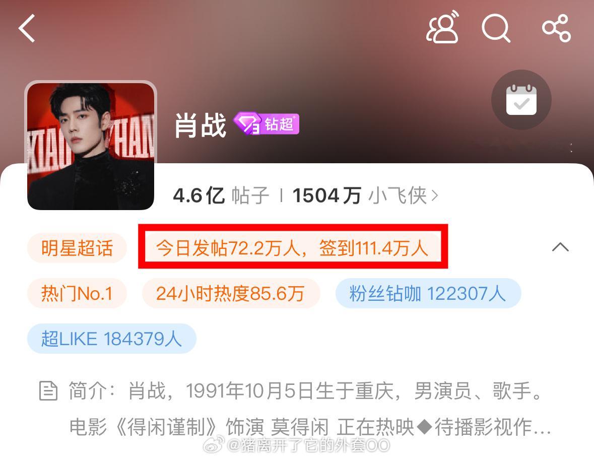 肖战热力值破四亿肖战微博之夜战队热力值破4亿一骑绝尘,以7000万+差距断层拿下第一,超话签到人数111万,发帖人数72.2万历史最高,爆次数最多、时间最长,实绩流量齐飞第一人!!!肖战抢座投票榜一