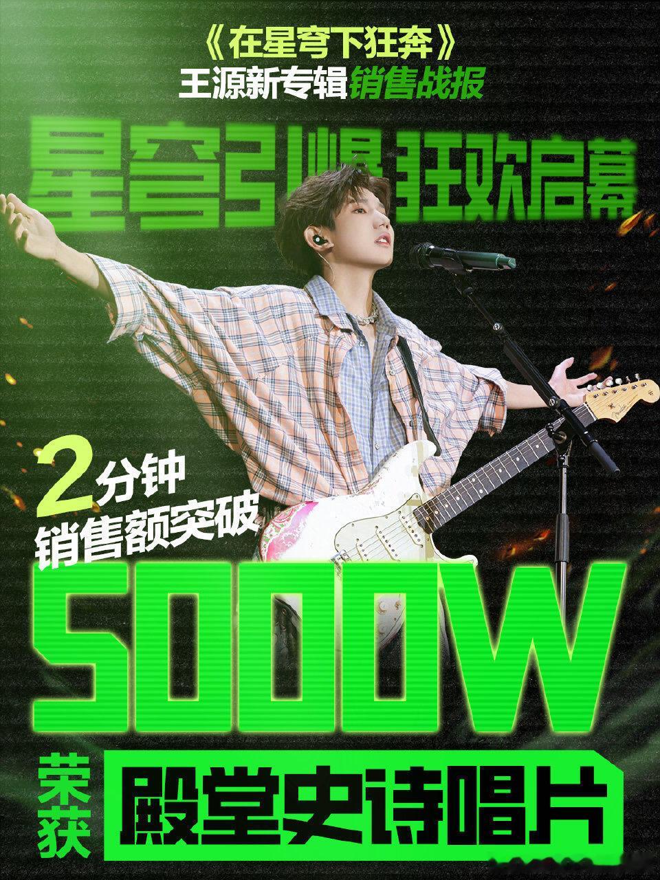 王源新专辑《在星穹下狂奔》2分钟销售额破5000W达成殿堂史诗唱片💿 王源实体专辑销售额