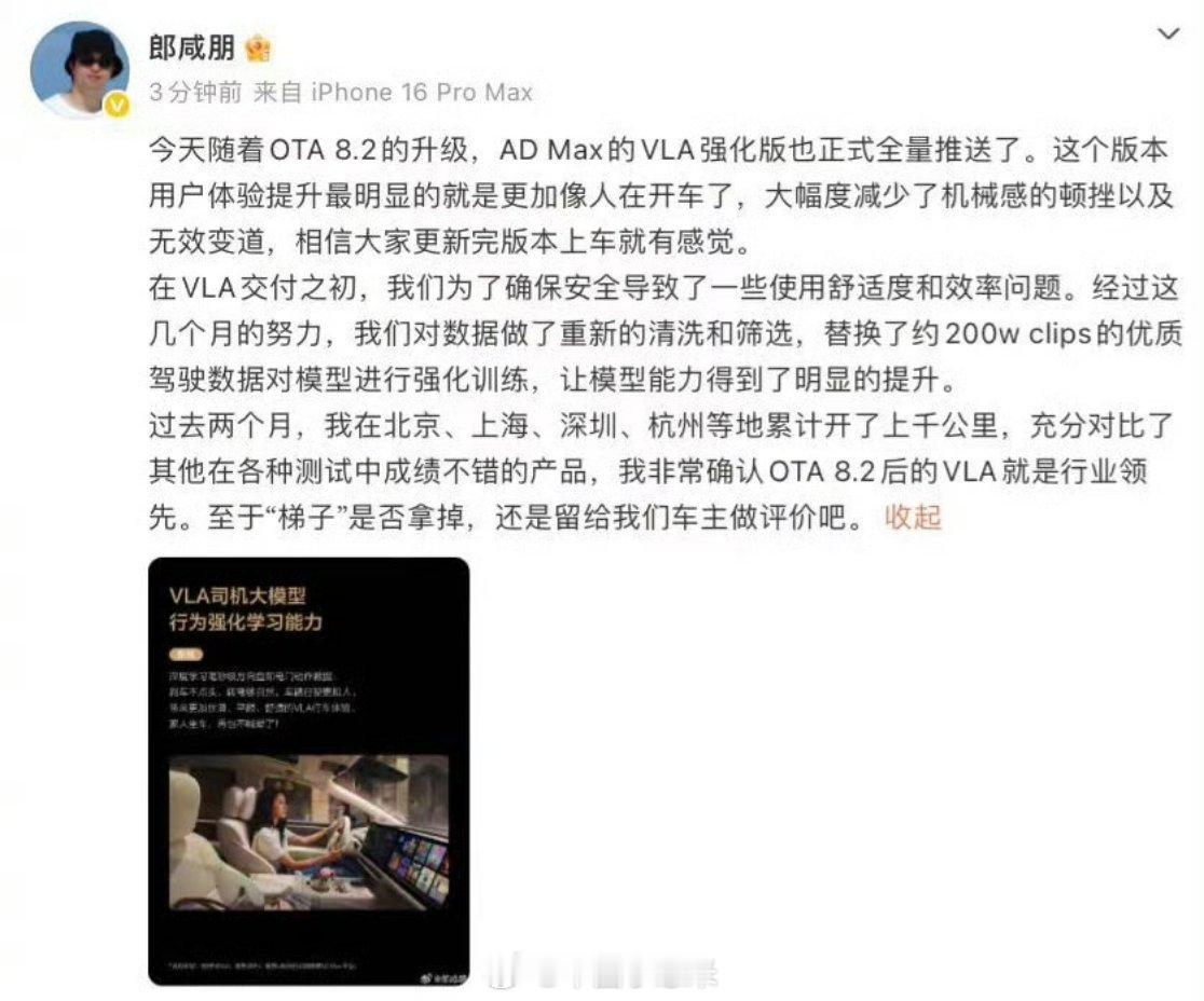 理想高管称VLA强化版行业领先 OTA 8.2携VLA强化版登场,200w优质数据加持+多城千公里实测,硬刚同级竞品,行业领先与否,车主说了算!