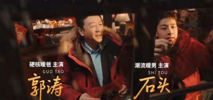 郭涛带儿子拍贺岁短片,石头7分阳刚2分秀气1分霸气,斩女也斩男