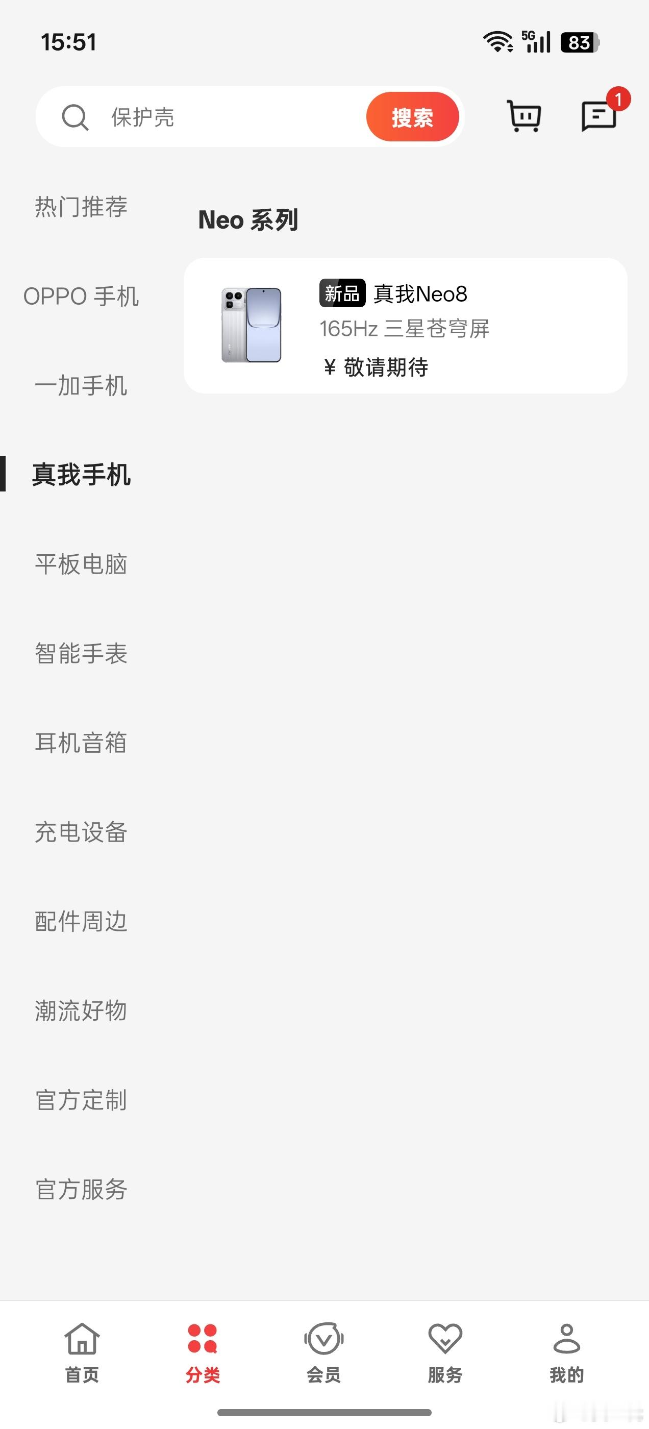 OPPO商城APP里能看到真我手机的分类了,即将发布的真我Neo8将会成为第一台