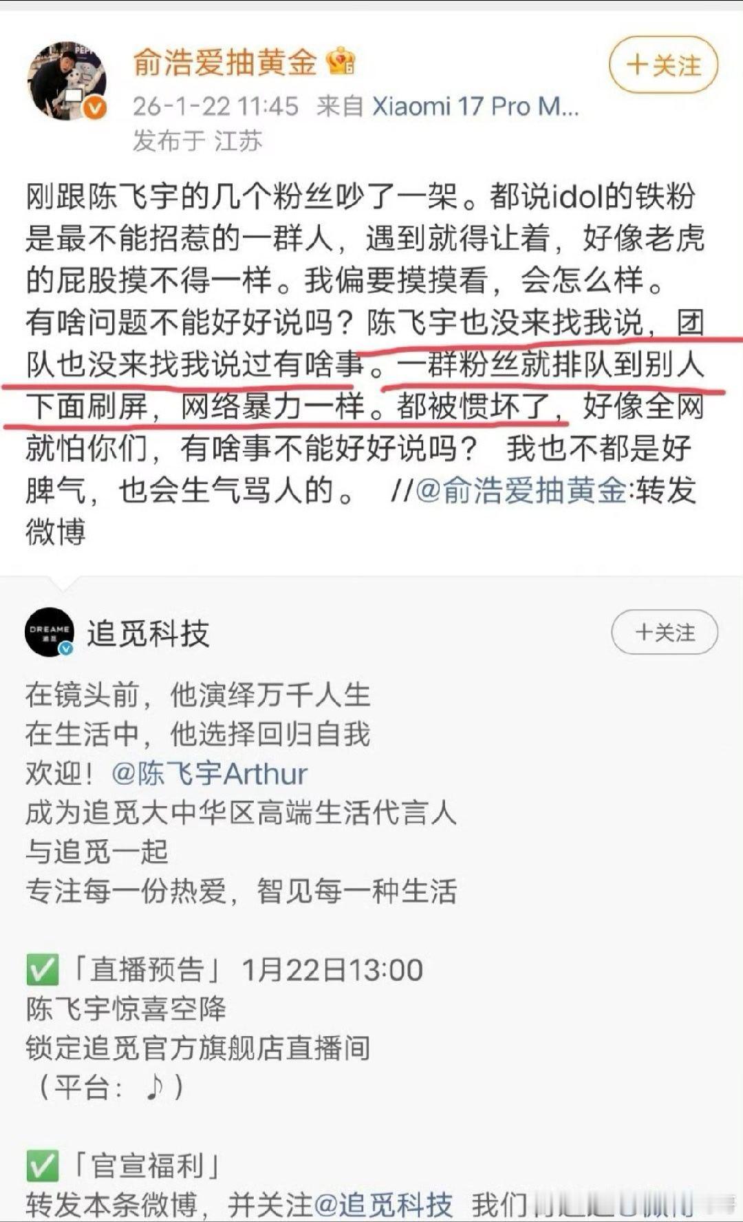 追觅CEO微博怼陈飞宇粉丝,好不专业的样子