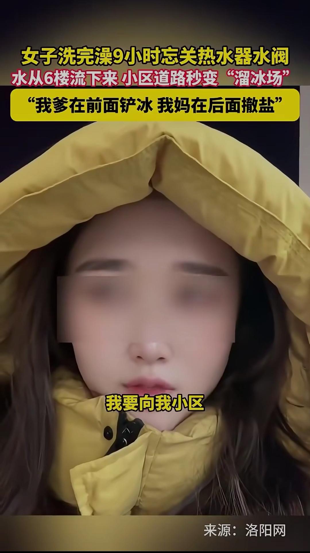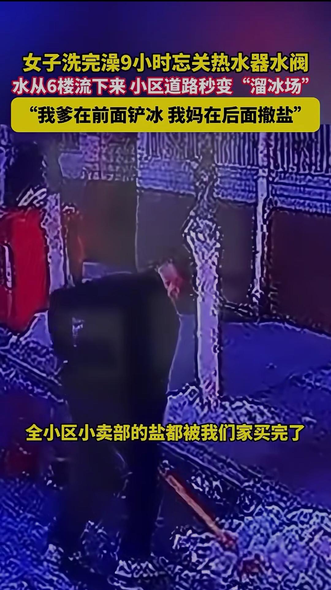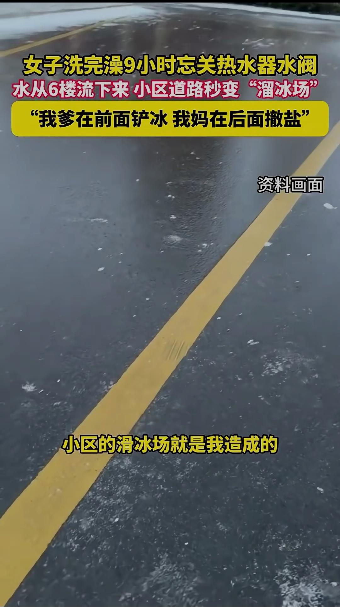 零下的寒风里,六楼漏下的水在9小时里织成一张冰冷的网,小区道路结上数厘米厚的冰,晨光里泛着晃眼的光,老人拄着拐杖一步一滑,上学的孩子被家长死死拉住,这方“天然溜冰场”,藏着让人后背发凉的危险。而这场意外的源头,不过是女子洗完澡后一个漫不经心的转身,没拧紧的水阀,让近20吨水倾泻而下,漫了家、淹了楼道、冻了整个小区的路。用行动纠正大意酿成的错误 没有逃避,没有推诿,清晨的小区里,最动人的画面悄然上演。老父亲扛着铁锹率先冲下楼,一铲下去震得手麻,冰面只磕出一小块,他却弓着背一下下凿,花白的头发沾了霜气;母亲攥着盐袋跟在身后,一把把撒在冰面上,脚步匆匆,嘴里还念叨着怕有人滑倒。闯了祸的女子更是红着脸站在路口,引导行人绕行,挨个向邻居鞠躬道歉,为了融冰,她跑遍周边小卖部,把盐买得断货,还特意发视频致歉,直言“自己捅的篓子,拼了命也要补好”。 这一幕,看哭了无数网友。谁的生活里没有过一时疏忽?可真正难得的,是犯错后不逃避的担当,是一家人拧成一股绳的温暖。原本可能引发的邻里矛盾,竟在铲冰撒盐的身影里,变成了社区的暖心瞬间,有邻居主动拿来热水浇冰,物业火速调来工具支援,冰冷的冰面,终究被人心的温度慢慢融化。 一场漏水事故,照出了最真实的人性:一时的粗心或许难免,但刻在骨子里的责任,永远是化解麻烦的良药。那个没关紧的水阀,是给所有人的警示:生活里的小事从不是小事,一个疏忽,可能酿成大错;而那份犯错后勇敢承担的态度,更是家庭教育最珍贵的底色。寒风会冻住路面,却冻不住人心的温暖,这家人的举动,让这个寒冬多了一份直抵心底的温柔。