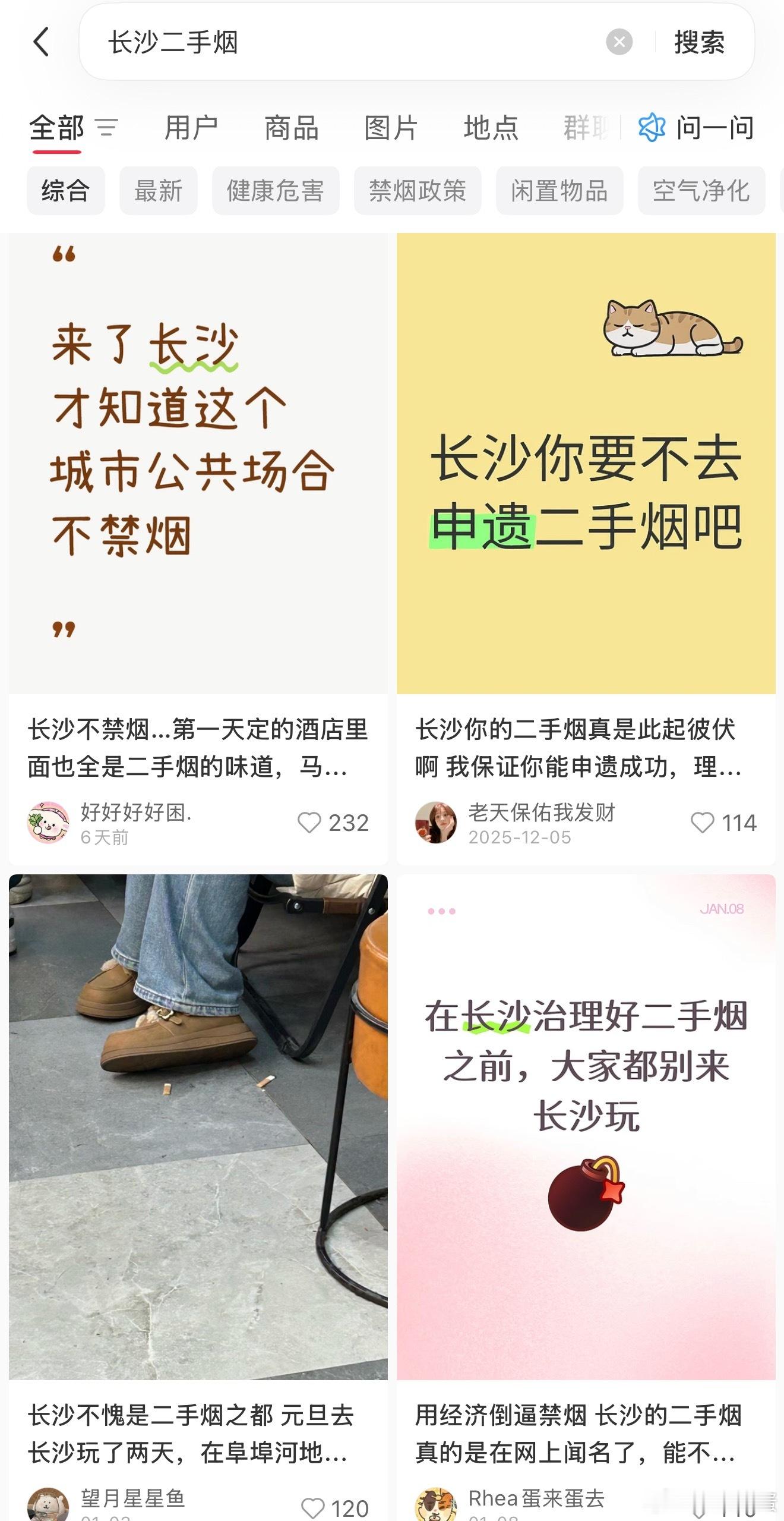 去长沙旅游的人嘴真严啊,从未去过一个城市有那么多随时随地抽烟的,不管男女老少。闻不了二手烟的人简直天塌了,走路上10分钟等于吸两根二手烟,毫不夸张,回来就嗓子难受,喉咙里有异物感。去看医生,医生一开始以为我就是普通感冒,我说我嗓子疼的说不了话,他拿灯让我张开嘴看看喉咙,看完说发炎很严重让我去抽个血,结果出来后,支原体感染了……给我开了药、上了中药贴双管齐下。(没想到现在还有中药贴可以贴在喉咙上的,还以为只有那种疗养的三伏贴。)去小红书搜了搜,那些本地闻不了烟味儿,和过来旅游的,也都被长沙二手烟问题深受其害。去爬岳麓山的时候能看到推着孩子的也在抽烟,更别说饭店和街道了,甚至还有在地铁和电梯里抽的,听说制止也没用,那些人还会反过来骂你长沙确实很好玩好吃好喝,但我可能因为这个二手烟问题,以后不去长沙了……