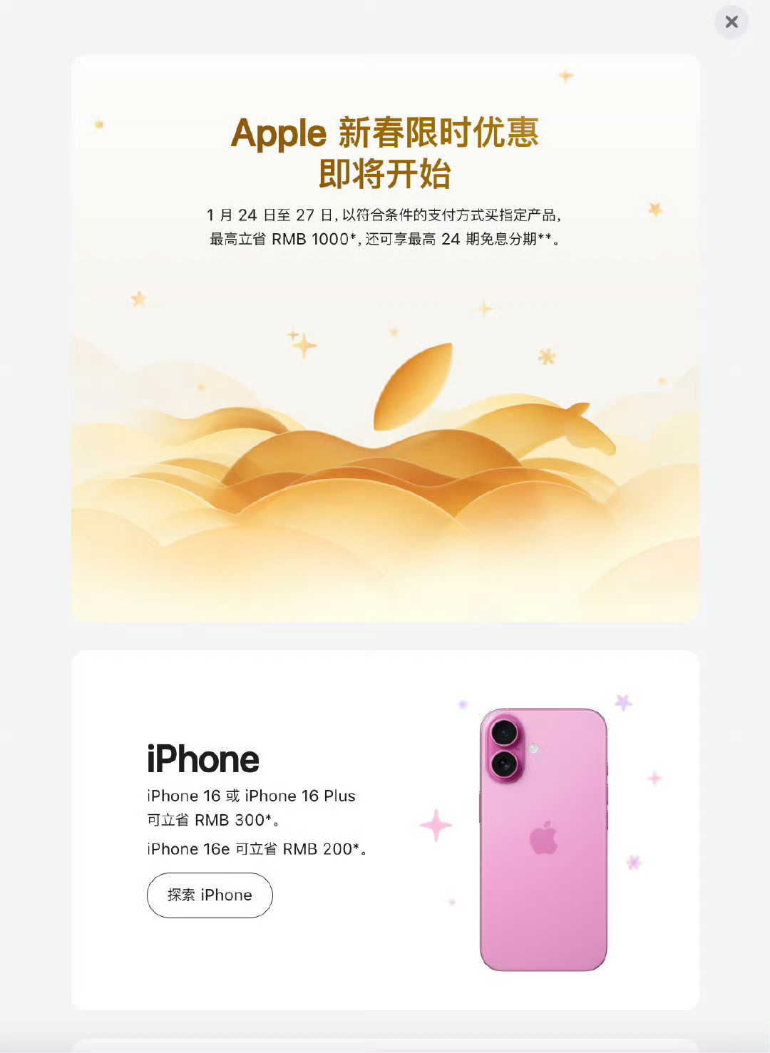 苹果推出新春优惠苹果官网最高降价1000元表面上看起来优惠力度还蛮大,但实际上就是在清库存!