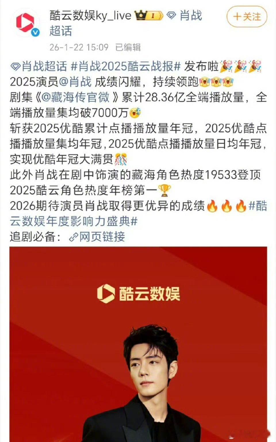肖战酷云战绩累累酷云发肖战战绩酷云发了肖战🈶战绩累累!真正的顶流肖战