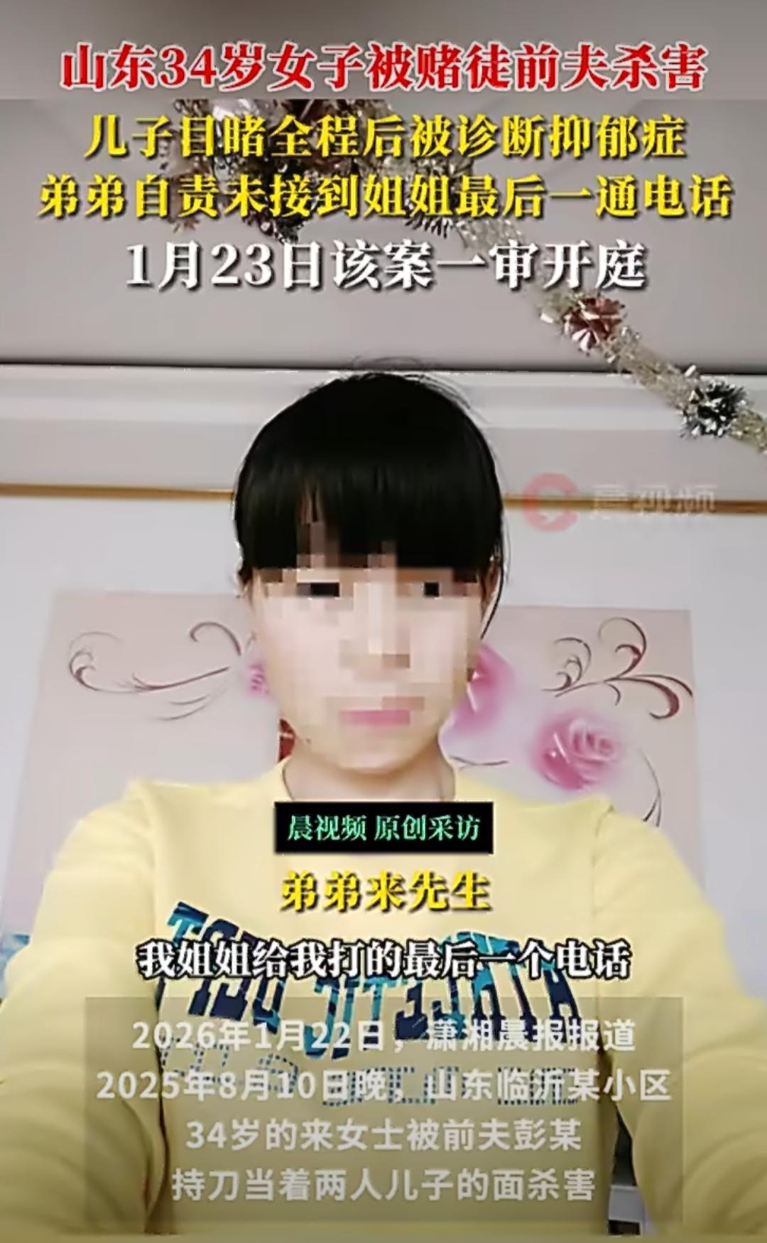 这起发生在山东临沂的悲剧,光是听着就让人揪心又气愤。34岁的来女士本来已经摆脱了不幸的婚姻,眼看就要开启新生活,却被赌徒前夫残忍杀害,更让人痛心的是,这一切还发生在她11岁儿子的眼皮底下。来女士和前夫彭某是通过相亲认识的,婚后没多久就发现对方染上了赌博的恶习。一开始彭某欠下几十万赌债,来女士心疼孩子,不忍心家庭破碎,就把两人的婚房卖了帮他还了债,本以为这样能让彭某回头,没想到他死性不改,没过多久又偷偷去赌,这次直接欠下了上百万的巨债。被逼无奈的来女士再也看不到希望,只能选择离婚,法院把孩子判给了她,可彭某之后连一分钱抚养费都没给过。为了养活孩子、还清自己帮彭某还债欠下的钱,来女士一个人打了两份工,没日没夜地辛苦奔波,好不容易才把债务还清。 就在生活终于有了起色的时候,经人介绍,来女士认识了新的相亲对象,两人相处得不错,很快就订了婚,本来以为好日子就要来了,可这个消息传到彭某耳朵里后,一切都变了。彭某开始频繁骚扰来女士,让她不得安宁。案发那天,来女士因为要给孩子办转学手续,带着儿子回了市区的家,没想到彭某早就提前在她家门外装了监控,看到母子俩回来,就立刻上门,用探望儿子的借口诱骗11岁的孩子开了门。进门后,彭某直接问来女士还能不能和好,在得到“我已经订婚了”的明确拒绝后,他突然掏出随身携带的刀子,对着来女士疯狂捅刺。 整个行凶过程中,孩子就在家里,彭某死死控制住他,不让他报警,也不让他靠近卧室。来女士身受重伤后,从卧室一路挣扎着爬到卫生间,痛苦地煎熬了十几分钟,而彭某却坐在客厅里抽烟,眼睁睁看着前妻流血,完全没有采取任何抢救措施,直到来女士彻底没了气息,他才拨打了报警电话。更让人难受的是,案发当晚,来女士的弟弟来先生曾接到姐姐打来的电话,可当时他正在忙工作没来得及接,等几分钟后回拨过去时,电话已经打不通了,他怎么也没想到,这竟是姐姐生前最后的求救。 如今,那个11岁的孩子成了这起悲剧中另一个严重的受害者。他本来就亲眼目睹了妈妈被杀害的全过程,心里留下了巨大的阴影,还一直深深自责,总对着舅舅念叨“如果那天我不开门,妈妈是不是就不会死”。现在的他变得沉默寡言,几乎不跟任何人交流,精神状态极差,还被确诊了抑郁症,每天晚上都需要舅舅陪着才能入睡。来女士的家人表示,他们坚决不接受任何赔偿和调解,唯一的诉求就是依法严惩彭某,担心如果量刑过轻,几十年后彭某出狱,孩子还要再次面对这个杀害妈妈的凶手。目前,这起案件的一审已经确定了开庭时间,所有人都在等着法律给出一个公正的判决,还遇害的来女士一个公道。