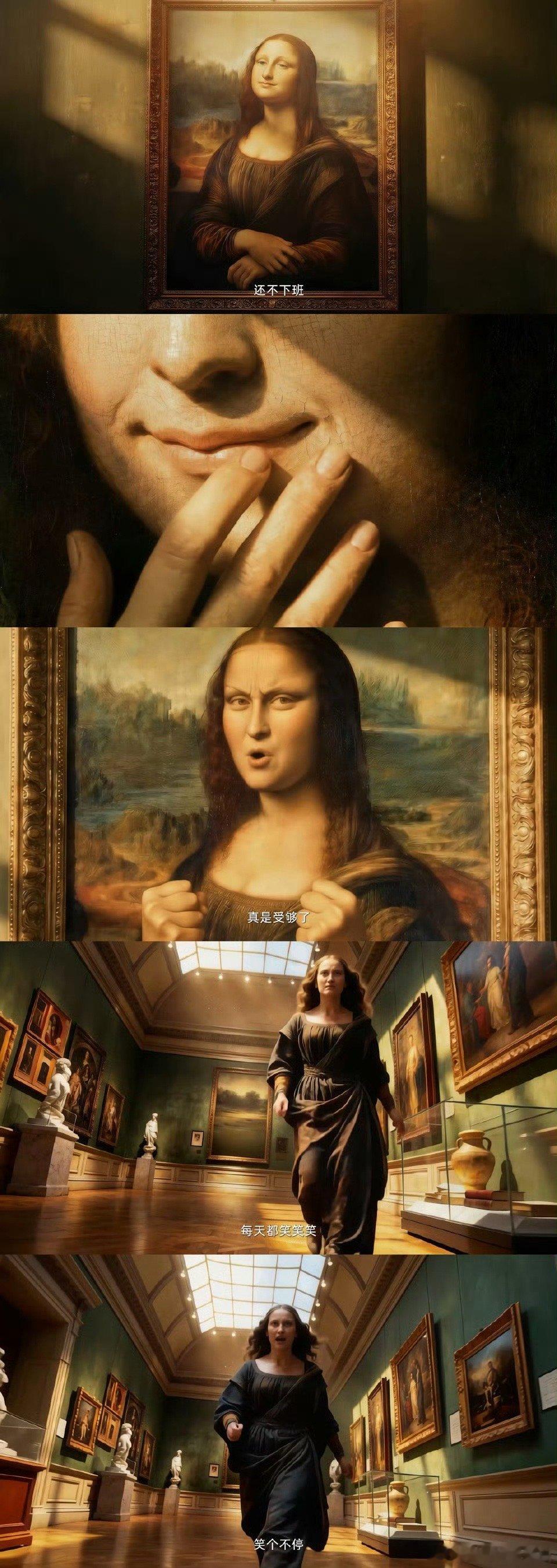 蒙娜丽莎也逃不过上班破防 文艺复兴女神也扛不住职场PUA!蒙娜丽莎从画里出逃,边跑边喊“别让我笑了,我要下班!”,打工人看了直呼“世另我”!