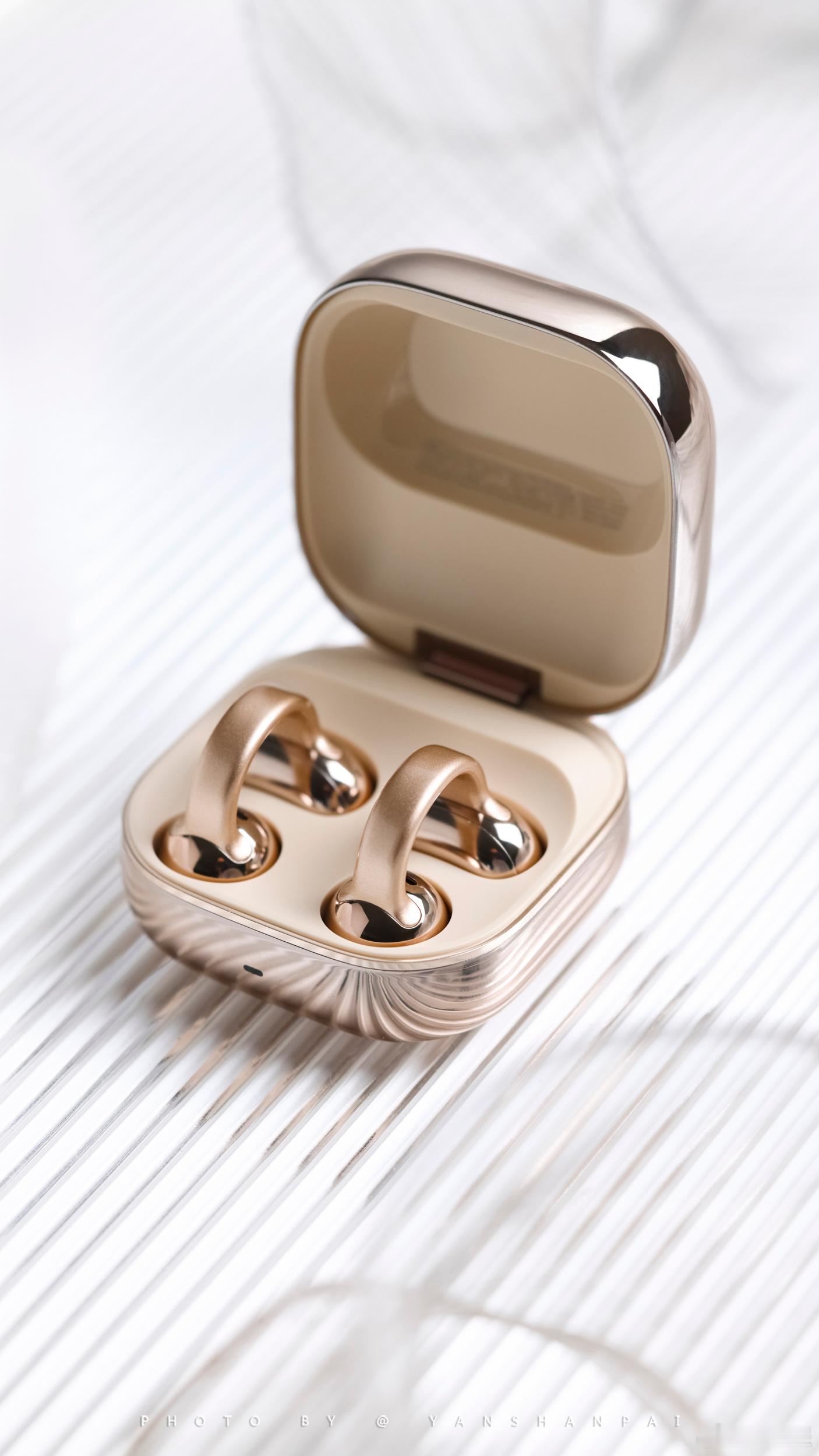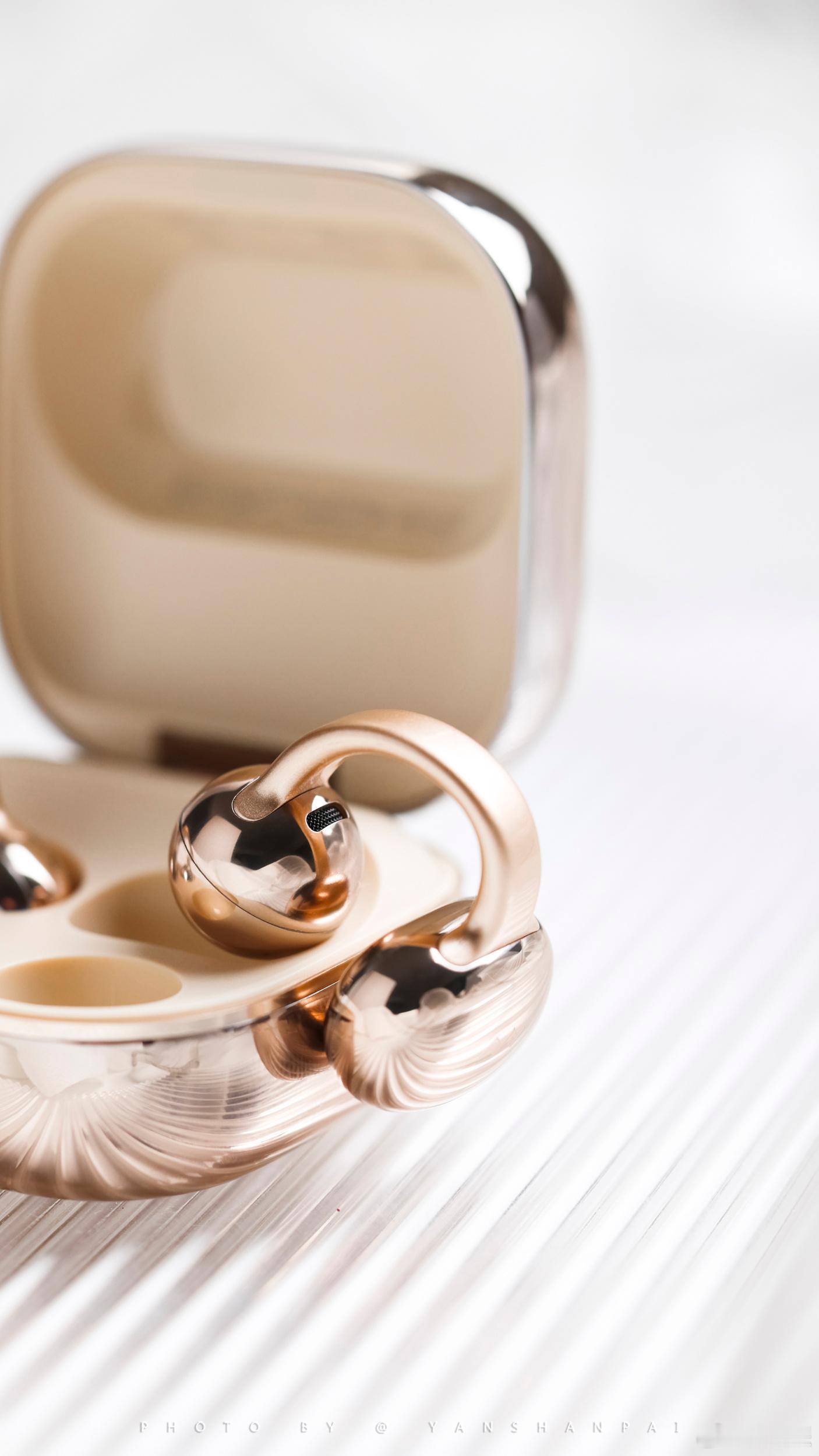 耳夹耳机真是用了就不回不去,强烈推荐像我一样的重度耳机人群去试试。这不,最近我又入手了MOVA TPEAK Clip Pro,拍了组图,顺便聊聊使用感受。先说颜值。类似高级化妆盒的设计,配合星芒金配色以及正面大理石一样的纹理,真就是一眼高级;耳机没啥可说,重点是C桥采用扁平设计,佩戴时更贴近耳朵,可以带来更舒适的佩戴体验。MOVA TPEAK Clip Pro实际上耳的感觉很紧实,但不会有挤压感,给人一种踏实的感觉,再配合无感的佩戴体验,导致我经常下班回家才发现它还在耳朵上MOVA TPEAK Clip Pro的音质也可圈可点。三磁潮汐架构驱动开放式发声,同时兼顾环境音感知与音乐沉浸感;96.3%空间利用率,让低音更沉、人声更真;最重要的是,MOVA TPEAK Clip Pro支持降噪,彻底解决了以往耳机在地铁等嘈杂环境不容易听清的烦恼。其它亮点也可给大家列一下。支持实时翻译;续航从到晚一天基本没问题,和官宣的9小时基本相符;支持IP54防风防水,运动也不怕汗水。总结,MOVA TPEAK Clip Pro颜值超酷,佩戴无感,续航够用,推荐!