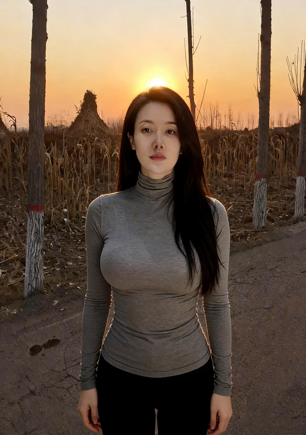 落日熔金染远岑,寒林瘦木共萧森。 高衫浅衬凝脂色,长发轻垂素玉簪。 独立荒郊惊岁晚,无言极目感秋深。 归鸦数点投林去,留得清光伴客吟。