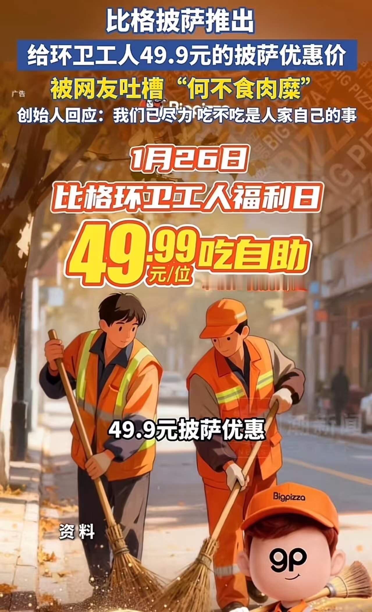 现实版“何不食肉糜”!比格披萨宣布给环卫工49.9元的披萨优惠价,被网友质疑:“企业做善事不能只感动自己!这个价格远超环卫工人日均餐费预算,人家怎么舍得吃?这不就像是给了我200万劳斯莱斯的优惠券吗?” 这是一场让人唏嘘又深思的“善意”背后,隐藏着多少我们未曾察觉的“冷漠”? 比格披萨的49.9元优惠,乍看之下像是一份温暖的礼物,为城市的“城市英雄”——环卫工人送上一份实实在在的关怀。然而,细细品味,却仿佛听到一声无声的叹息。 善意,真的只是善意吗?还是另一场精心设计的“营销秀”? 我们要问的,不是这份优惠本身,而是背后那份“善意”是否真正触及了他们的心灵。环卫工人每天早出晚归,风雨无阻,他们的日常,可能只是一份简单的饭菜、一份温暖的关怀,却为何会被这份“优惠”弄得如此复杂? 有人说,这像极了古代的“何不食肉糜”——吃不到肉的百姓,却被那些高高在上的贵族用一句“你们可以吃这点”来安抚。这是不是在无声中告诉他们:“我们在帮你们,其实你们不需要太多”? 更令人心碎的是,网友的质疑也折射出社会的另一面——我们对“善事”的期待已经变得极其功利。企业做善事,难道真的只是为了善意?还是为了塑造品牌形象,获得更高的关注和口碑? “优惠券”变成了“奢侈的馅饼”,环卫工人们是否真能因此感受到温暖?还是只是在被动接受一份“象征性的关怀”? 这不禁让我们反思:我们是不是也陷入了“善意的陷阱”?当善举变成一种“秀”,当“善意”变成了“营销手段”,我们还能相信这是真心实意的关怀吗? 或许,我们更应该关注的是那些看似平凡却真实温暖的细节——一顿热腾腾的饭、一句真挚的问候、一次真诚的关心。这些,才是打动人心的“良药”。 而不是用一份价格略低的披萨,来装点一份“公益”的虚华。善意,不应是一场“秀”,而应是一份发自内心的责任与担当。 每个人都渴望被温暖,也许我们更需要的是,彼此用心去理解、去关怀,而不是用“优惠券”去打点一场“善意的秀”。因为,只有真心,才能温暖人心。你怎么看?是不是也曾在“善意”的名义下,感受到那份“无奈与心酸”?留言告诉我,让我们一同探讨这背后的深意。自助比格比萨 比格比萨总部 比格比自助比萨 比格披萨兼职 比格比萨广告 华南比格比萨 比格比萨外卖节