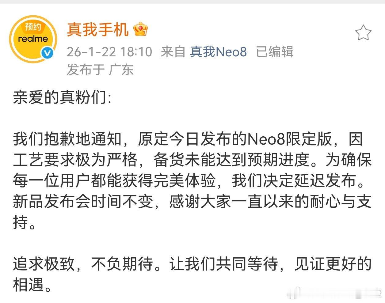 很突然,Neo8限定版延迟发布难道是第一批货出来,有问题?
